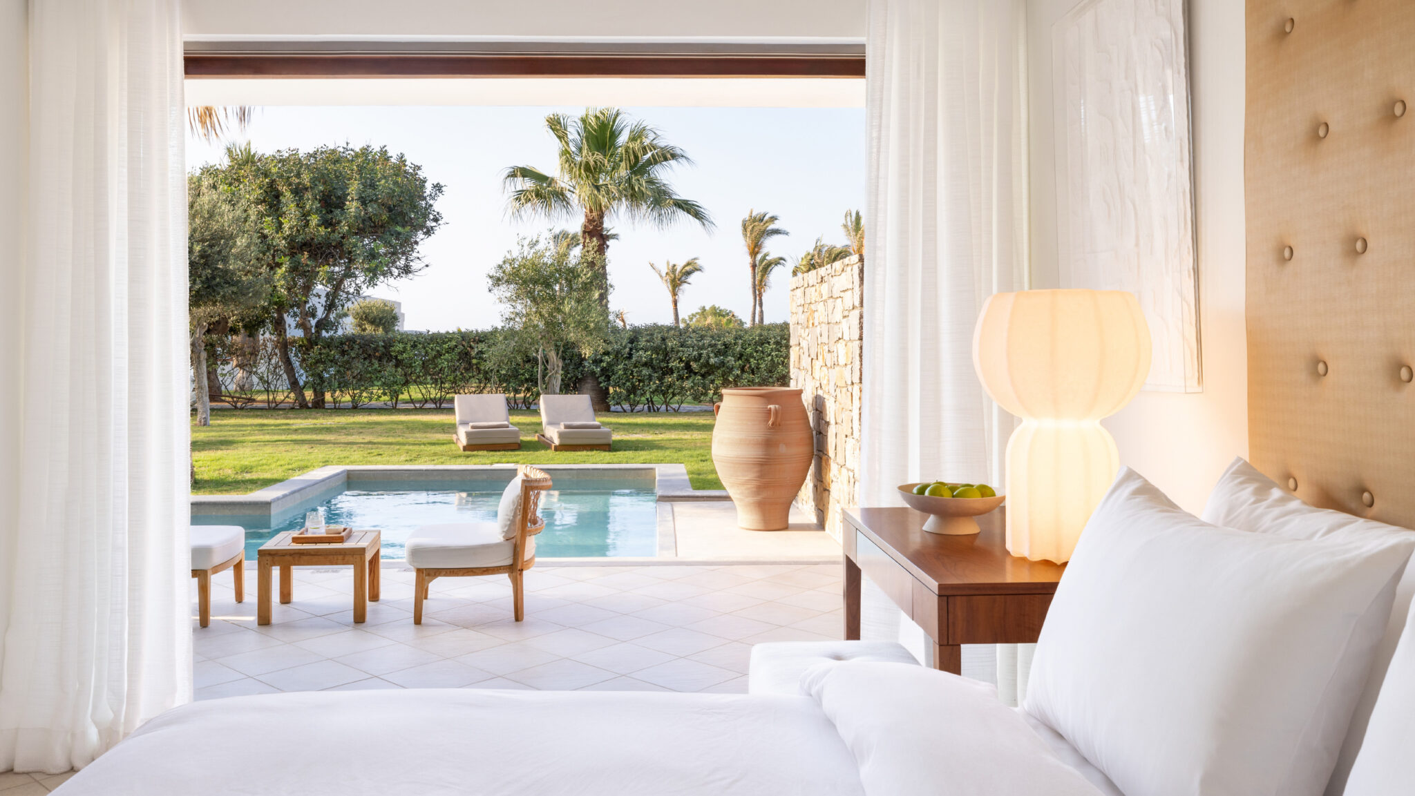 Η εντυπωσιακή συλλογή από δωμάτια, bangalows, σουίτες και βίλες εκπλήσσει με το μοναδικό τους χαρακτήρα, το ξεχωριστό design, τη διαχρονική αισθητική και τις luxury παροχές. Και εδώ κυρίαρχη είναι η πέτρα, το άσπιλο λευκό και οι γυάλινες επιφάνειες που επιτρέπουν στο ζωηρό γαλάζιο του Κρητικού Πελάγους και στο λαμπερό μεσογειακό φως να εισβάλλουν στους υπέρκομψους χώρους. Αίσθηση προκαλεί το άνετο μέγεθος των superior δωματίων και των bangalows-ακόμη κι αυτά των δύο ατόμων φτάνουν τα 33τ.μ.-, ενώ όλα διαθέτουν μπαλκόνι ή βεράντα, θέα ή και ιδιωτικό κήπο ή δική τους πισίνα. Από τις δανικές για τετραμελείς οικογένειες σουίτες, ξεχωρίζει αυτή των 55 τ.μ., που κρυμμένη μέσα στον καταπράσινο κήπο απολαμβάνει θέα από την ιδιωτική της βεράντα και τις δύο αποκλειστικές της πισίνες, εξοπλισμένες φυσικά με ομπρέλες και άνετες ξαπλώστρες. Όσο για τις βίλες, πρόκειται αναμφίβολα για την επιτομή της κομψότητας, της ιδιωτικότητας, της απόλαυσης του ευ ζην πλάι στην ακροθαλασσιά. Ιδιωτικά μπαλκόνια με άπλετη θέα, εξωτερικές τραπεζαρίες, σκιερές βεράντες με δικό τους καθιστικό, θερμαινόμενες πισίνες για τις μέρες που το αεράκι φυσά πιο δροσερό ή για ιδιωτικές βραδινές βουτιές ακόμη και τον Οκτώβρη και μίνι γυμναστήρια εντός του χώρου τους, είναι κάποια από τα χαρακτηριστικά που αναδεικνύουν τις Amirandes Villas μεταξύ των κορυφαίων επιλογών διαμονής σε ολόκληρη την Κρήτη.