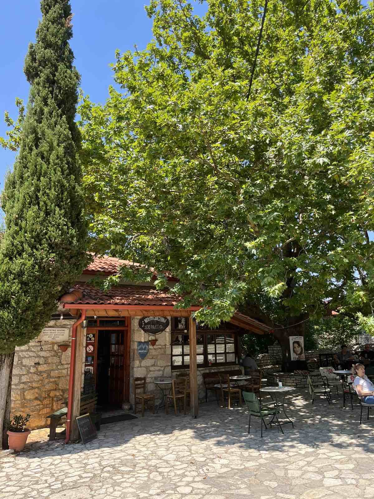 Σημείο αναφοράς του χωριού είναι φυσικά η πετρόχτιστη πλατεία με τα πλατάνια. Μπορείτε να καθίσετε στο μοναδικό καφενείο και πρώην σχολείο του χωριού (λειτουργεί τα Σαββατοκύριακα) και να απολαύσετε τον καφέ ή το τσίπουρο σας κάτω και γύρω από πλατάνια.