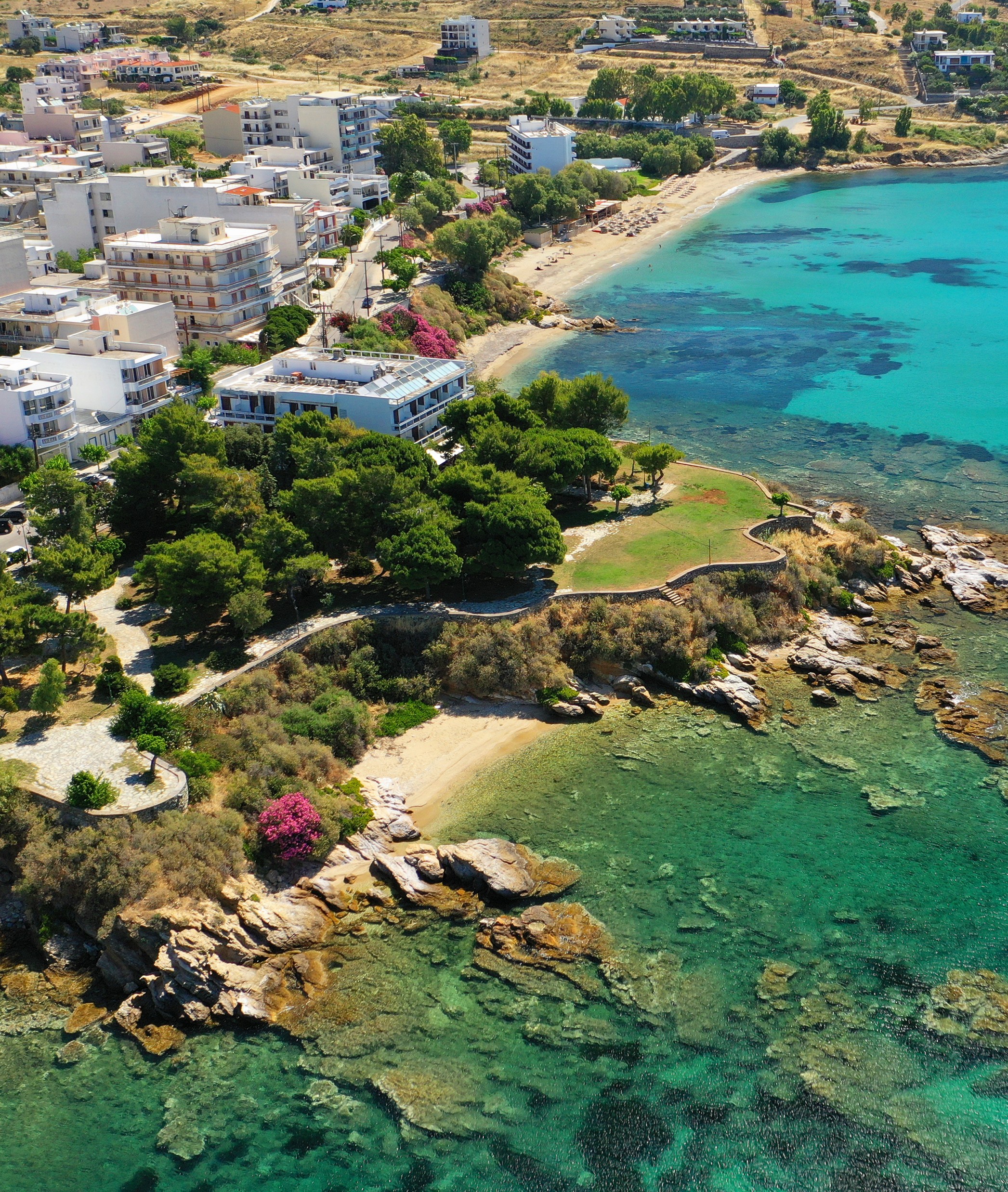 Το τοπίο γίνεται πιο ξερό και τρυφερό, τα σπίτια έχουν μικρά, μπλε παντζούρια στα παράθυρα, ενώ ψηλά, λευκά σκαλιά ενώνουν μεταξύ τους τα στενά δρομάκια. Οι μυρωδάτες βουκαμβίλιες καλύπτουν τους τοίχους των σπιτιών, και οι φαρδιές, ασβεστωμένες βεράντες ανοίγονται στη θέα της θάλασσας.