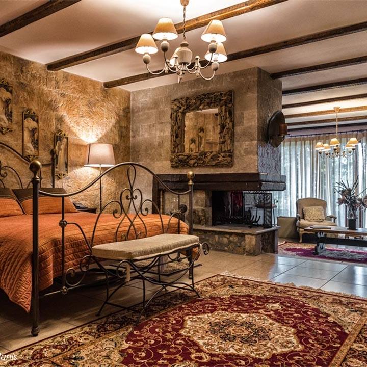 Όλα τα δωμάτια έχουν το δικό τους τζάκι, ενώ κάποια διαθέτουν ακόμα και ιδιωτικό τζακούζι για ακόμα μεγαλύτερη χαλάρωση. Μπορείτε ακόμα να περάσετε μία ολόκληρη ημέρα στο σπα του αρχοντικού για μία αξέχαστη αρωματοθεραπεία σώματος που θα σας ανανεώσει. Παράλληλα όσοι θέλουν να αποφεύγουν εντελώς τις μετακινήσεις στο ξενοδοχείο λειτουργεί και εστιατόριο όπου ο σεφ Ηλίας Μπαξάνης ετοιμάζει παραδοσιακές συνταγές με ντόπια υλικά της περιοχής.
