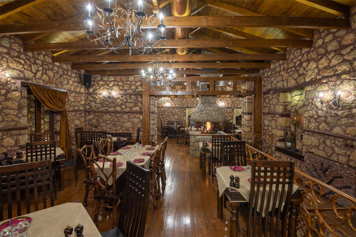 Αν έχετε τη δυνατότητα επιλογής καθίστε στο επάνω όροφο του εστιατορίου, όπου ένα στρογγυλό κεντρικό τζάκι σκορπά θαλπωρή και ζεστασιά σε ολόκληρο τον χώρο.