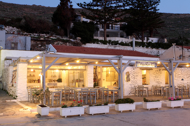 Το Εξοχικό της Μαργαρίτας: κλασική ταβέρνα που είναι γνωστή κυρίως για τη σχάρα της, ωστόσο θα βρείτε και αρκετά μαγειρευτά. Πολλές φορές βάζει και σούβλα (Ποίσσες, 2288031223). Το Στέκι του Στρογγύλη: μεζεδοπωλείο σε κεντρικό σημείο στο λιμάνι με μπόλικες επιλογές σε μεζεδάκια τόσο κρεατοφαγικά όσο και θαλασσινά (Κορησσία, 2288021025). Μαγαζές: όμορφος περιποιημένος χώρος που σερβίρει ελληνικές γεύσεις. Θα βρείτε φρέσκα ψάρια, επιλογές σε κρέας αλλά και ζυμαρικά (Κορησσία, 2288021104).