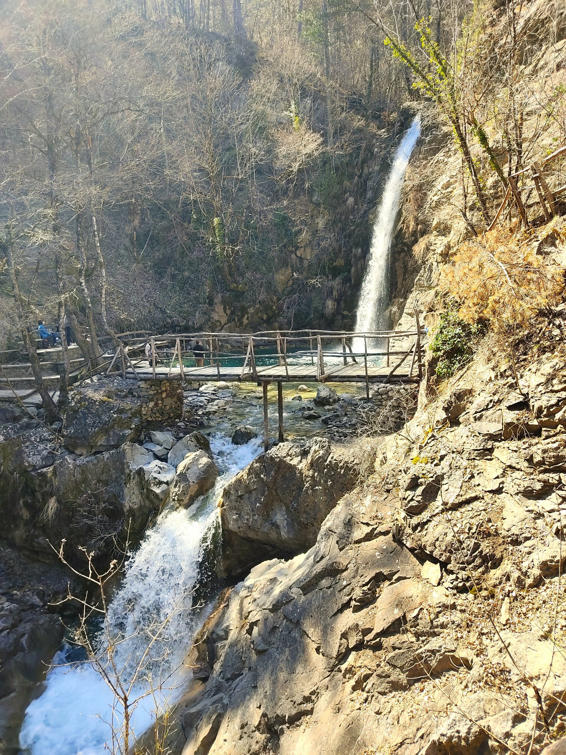 Στο τέλος της διαδρομής, η βουή των καταρρακτών δημιουργεί ένα έντονο αίσθημα προσμονής. Η θέα του μεγάλου καταρράκτη δύσκολα αφήνει κάποιον ασυγκίνητο: τα ορμητικά νερά του γεμίζουν τη λίμνη μπροστά του, η οποία τροφοδοτεί τον επόμενο μικρότερο καταρράκτη, που με τη σειρά του καταλήγει σε έναν τρίτο, ακόμη πιο χαμηλό, σχηματίζοντας μια δεύτερη λίμνη όπου μπορείτε και να βουτήξετε. Ένα ξύλινο γεφυράκι περνά πάνω από τη λίμνη του μεγάλου καταρράκτη, οδηγώντας σε μια μικρή διαμορφωμένη πλατεία με πλακόστρωτο και ξύλινο διάδρομο για τους επισκέπτες. Το καλοκαίρι, και κυρίως τον Αύγουστο, οι καταρράκτες γεμίζουν από κόσμο που απολαμβάνει βουτιές στα παγωμένα νερά τους. Αν, όμως, θέλετε περισσότερη ηρεμία, τώρα είναι η καλύτερη στιγμή.