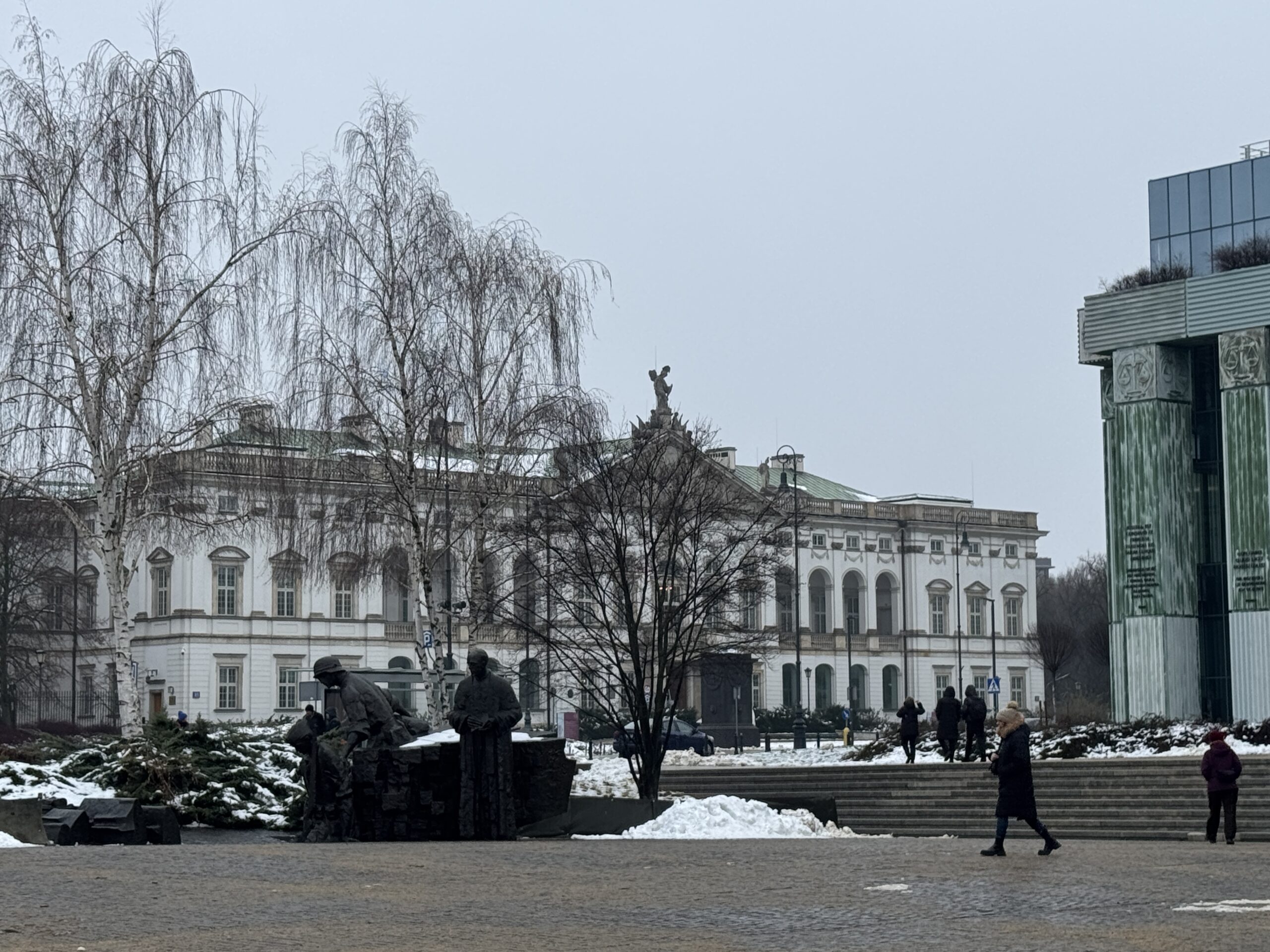 Το επιβλητικό Προεδρικό Μέγαρο (Pałac Prezydencki), με την εντυπωσιακή του νεοκλασική πρόσοψη, δεσπόζει στην περιοχή, έχοντας φιλοξενήσει κατά τη διάρκεια των αιώνων βασιλιάδες, πολιτικούς και ιστορικές προσωπικότητες. Αρχικά κατασκευασμένο τον 17ο αιώνα, το μέγαρο έχει ανακαινιστεί πολλές φορές, διατηρώντας ωστόσο τον διαχρονικό του χαρακτήρα. Η κεντρική είσοδος, με τις εντυπωσιακές κολώνες και τους φρουρούς σε παράταξη, αποτελεί δημοφιλές σημείο φωτογράφησης για τους επισκέπτες.