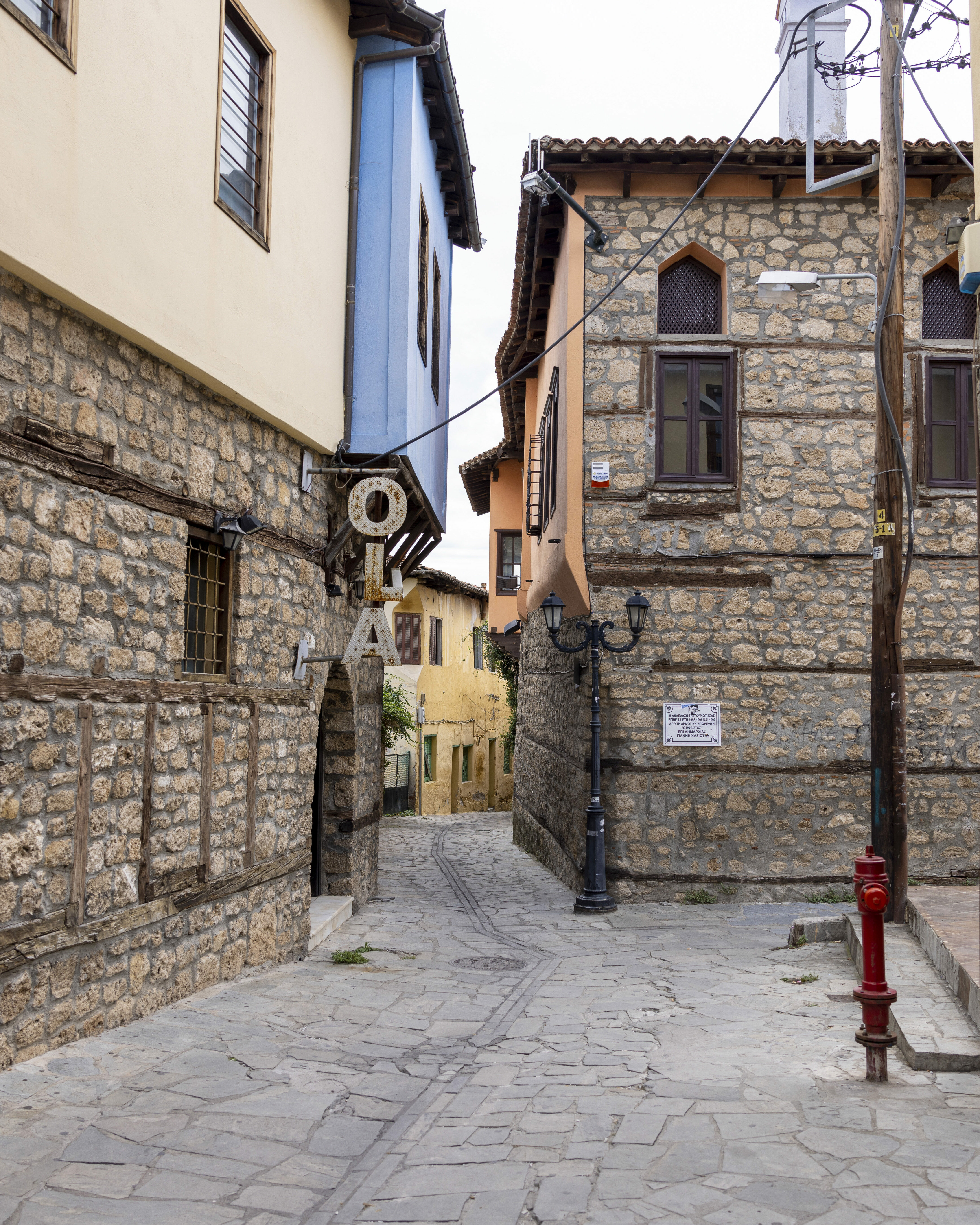 Στο τέλος της «Κυριώτισσας» θα βρεθείτε μπροστά στα Δίδυμα Οθωμανικά Λουτρά του Σινάν Μπέη Αλατά (Χαμάμ) τα οποία χρονολογούνται τον 15ο αιώνα και πήραν την ονομασία τους από τον διαχωρισμό γυναικείων και ανδρικών λουτρών και λειτούργησαν μέχρι το 1935. Μερικά μέτρα πιο πάνω θα εντοπίσετε την Ελληνική Ευαγγελική Εκκλησία, μία «κρυμμένη» εκκλησία καθώς βρίσκεται ανάμεσα σε δύο ψηλά αρχοντικά και δίνει την ευκαιρία στους Ευαγγελιστές να την επισκεφθούν και να προσευχηθούν.