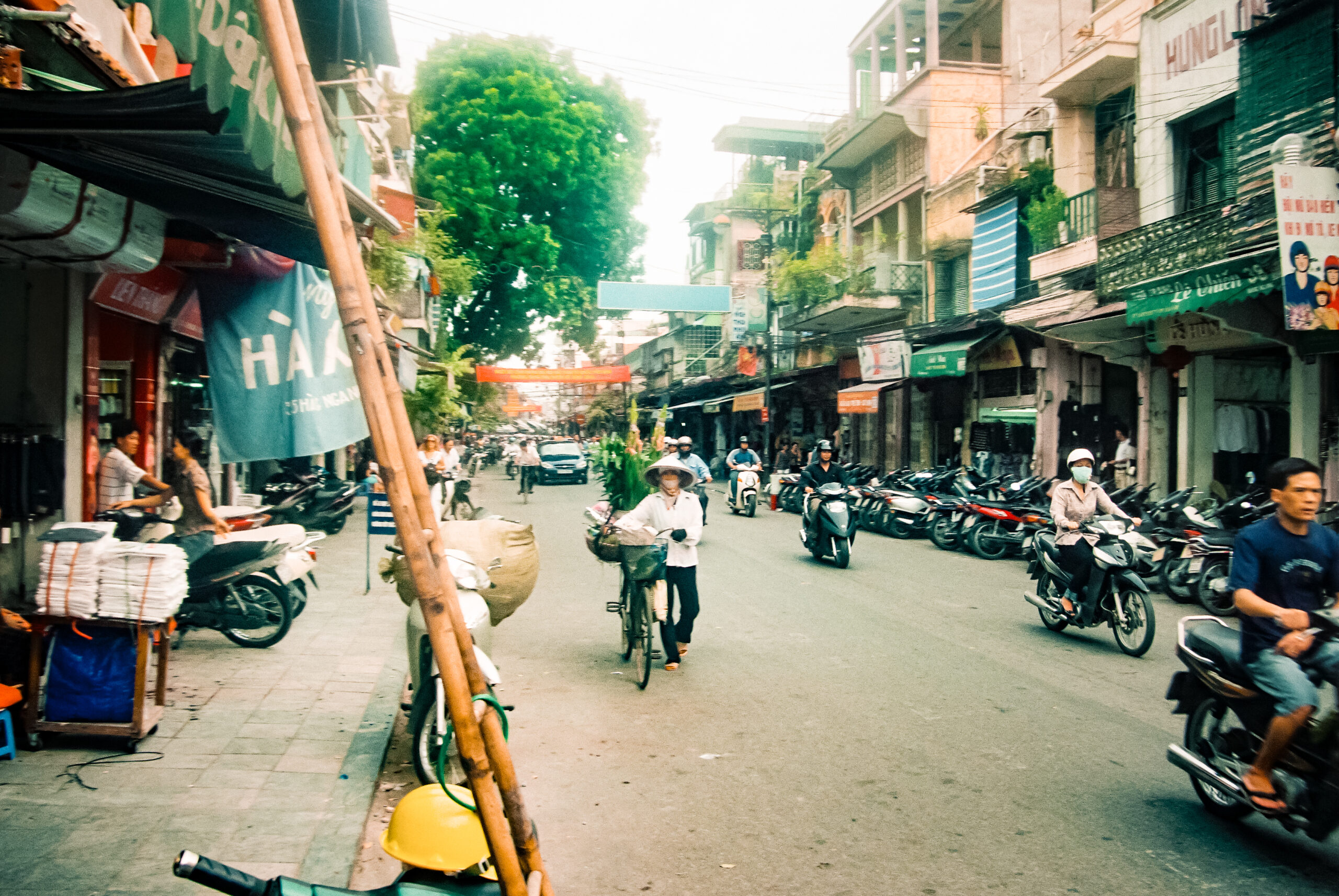 Διασχίζοντας τους στενούς δρόμους, απολαμβάνουμε τη μοναδική ατμόσφαιρα. Δρόμοι στενοί, με κτίρια φθαρμένα της αποικιακής εποχής, γεμάτοι με πάγκους, πλανόδιους πωλητές, παρκαρισμένες μοτοσυκλέτες και ποδήλατα. Το να διασχίσεις έναν δρόμο είναι μια περιπέτεια, καθώς τα αμέτρητα σκούτερ και τα κορναρίσματα σε αποπροσανατολίζουν. Σε όλα αυτά, αν προσθέσουμε το ακαταμάχητο άρωμα του καυτού φαγητού του δρόμου και τα αρωματικά βότανα, δίνεται μια εικόνα ξεχωριστή.