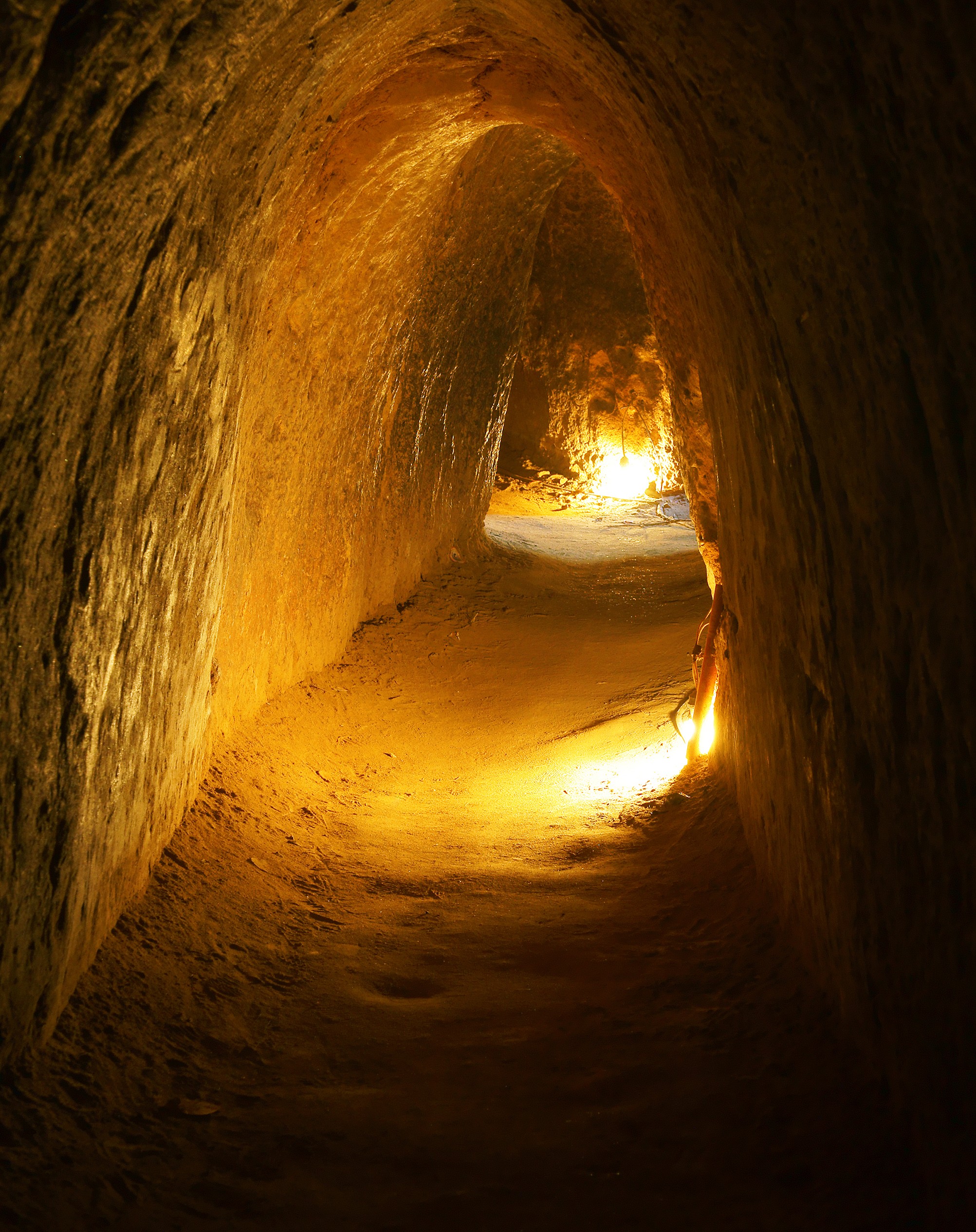 Την επόμενη ημέρα κάνουμε μια ημερήσια εκδρομή στις σήραγγες Cu Chi, την ιστορική υπόγεια στρατιωτική βάση της Σαϊγκόν, η οποία βρίσκεται 70 χλμ. από το κέντρο της πόλης. Οι σήραγγες Cu Chi είναι ένα τεράστιο δίκτυο υπόγειων περασμάτων μήκους 250 χλμ. Η κατασκευή ξεκίνησε το 1948 κατά τη διάρκεια της αντίστασης κατά των Γάλλων. Αρχικά αποτελούνταν από μικρές σήραγγες που σκάφτηκαν για την αποθήκευση εγγράφων και όπλων και την παροχή καταφυγίου στις επαναστατικές δυνάμεις. Τη δεκαετία του 1960 επεκτάθηκαν, αποτελώντας ζωτική βάση για τους Βιετκόνγκ στον πόλεμο του Βιετνάμ. Πρόκειται για υπόγεια πόλη, καθώς οι σήραγγες χρησιμοποιούνταν από τους στρατιώτες των Βιετκόνγκ ως κρυψώνες και ως οδοί επικοινωνίας και ανεφοδιασμού, ως νοσοκομεία και ως χώροι διαμονής για πολυάριθμους Βιετναμέζους μαχητές. Τα συστήματα σηράγγων είχαν μεγάλη σημασία για τους Βιετκόνγκ στην αντίστασή τους στις αμερικανικές δυνάμεις, οι οποίες αναγνώρισαν τα πλεονεκτήματα που είχαν οι Βιετκόνγκ με τις σήραγγες και έτσι ξεκίνησαν μεγάλες εκστρατείες για την αναζήτηση και την καταστροφή τους.