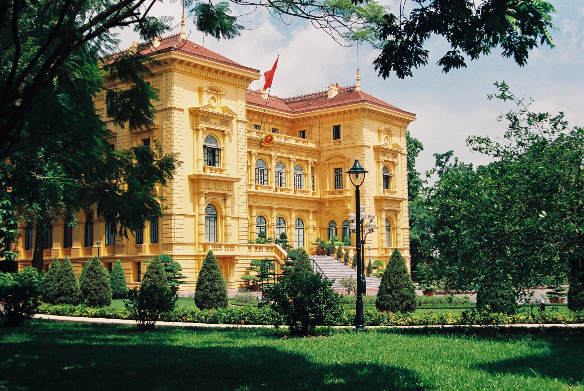 Πίσω από το μαυσωλείο βρίσκεται ένα παραδοσιακό βιετναμέζικο σπίτι που υψώνεται σε ξύλινους πασσάλους, στο οποίο έζησε ο Χο Τσι Μινχ από το 1958 έως το 1969 και διατηρείται όπως ακριβώς το άφησε. Φεύγοντας, περνάμε από το Προεδρικό Μέγαρο, που πριν από το 1954 ήταν το παλάτι που στέγαζε τον Γάλλο κυβερνήτη της Ινδοκίνας. Όπως και οι περισσότερες γαλλικές αποικιακές κατασκευές, το παλάτι είναι έντονα ευρωπαϊκό.