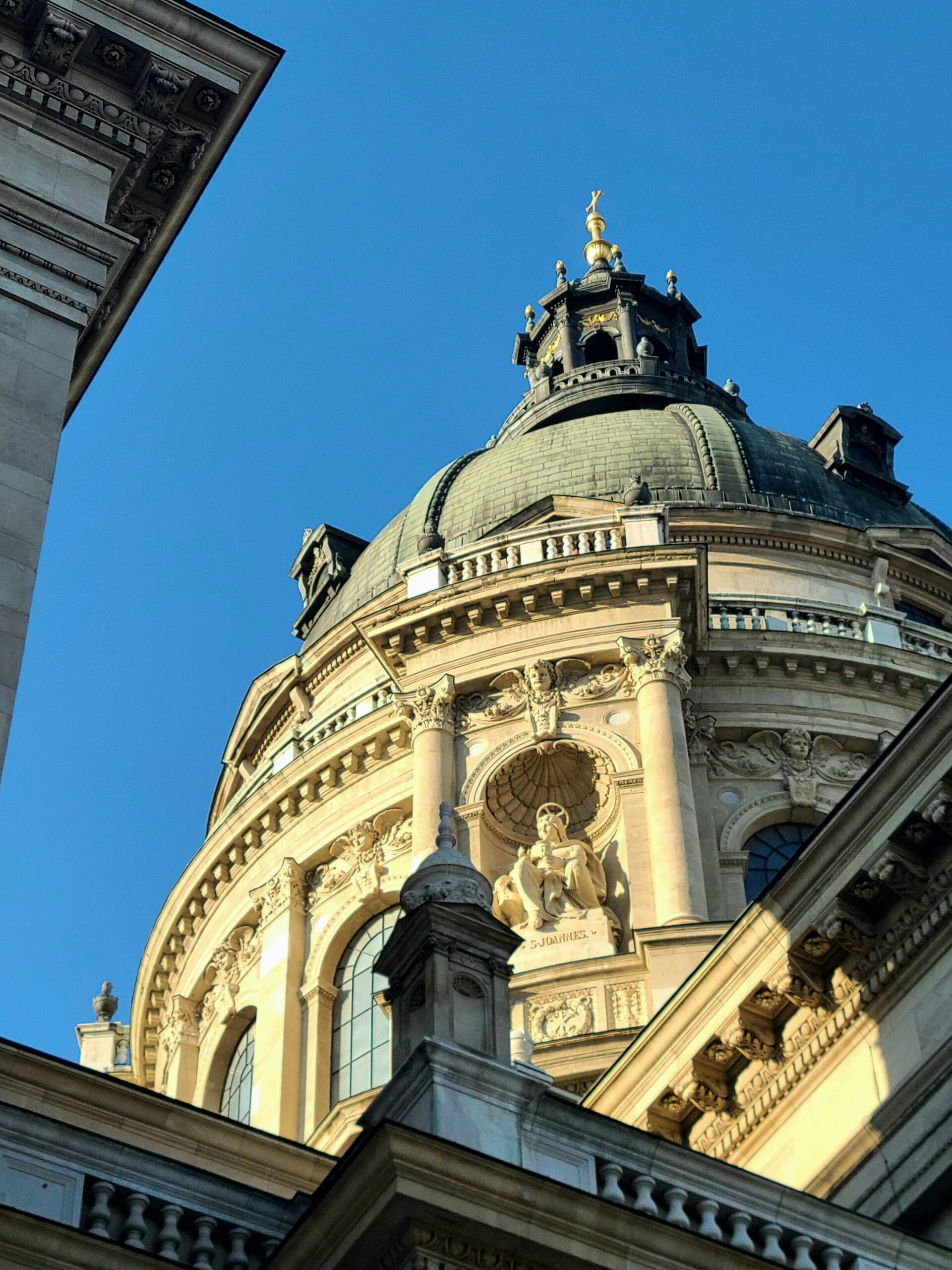 Κατευθυνθείτε στη βορειοανατολικά προς την τεράστια πλατεία Erzsébet tér όπου εκτός από τα νεαρά πλήθη που αυτή την εποχή κάνουν ηλιοθεραπεία και πικ νικ στο γρασίδι, θα βρείτε και τον Τροχό της Βουδαπέστης -πρώην Budapest Eye– ορόσημο της πόλης από το 2017 που άνοιξε. Ανεβαίνοντας σε μία από τις 42 καμπίνες του, θα απολαύσετε μαγευτική θέα της ουγγρικής πρωτεύουσας από ύψος 65 μέτρων. Από την πλατεία εξάλλου, μικρή είναι η απόσταση ως την εκθαμβωτική, νεοκλασικού ύφους Βασιλική του Αγίου Στεφάνου, που από κοινού με το Κοινοβούλιο κατέχει το ρεκόρ του ψηλότερου κτηρίου της πόλης, φτάνοντας τα 96 μέτρα και φέρει το όνομα του πρώτου Βασιλιά της Ουγγαρίας. Η ανάβαση των 364 σκαλοπατιών που οδηγούν στο θόλο -εναλλακτικά υπάρχει ανελκυστήρας-, θα σας αποζημιώσει με επίσης καταπληκτική θέα της βασίλισσας του Δούναβη και του γαλάζιου ποταμού.