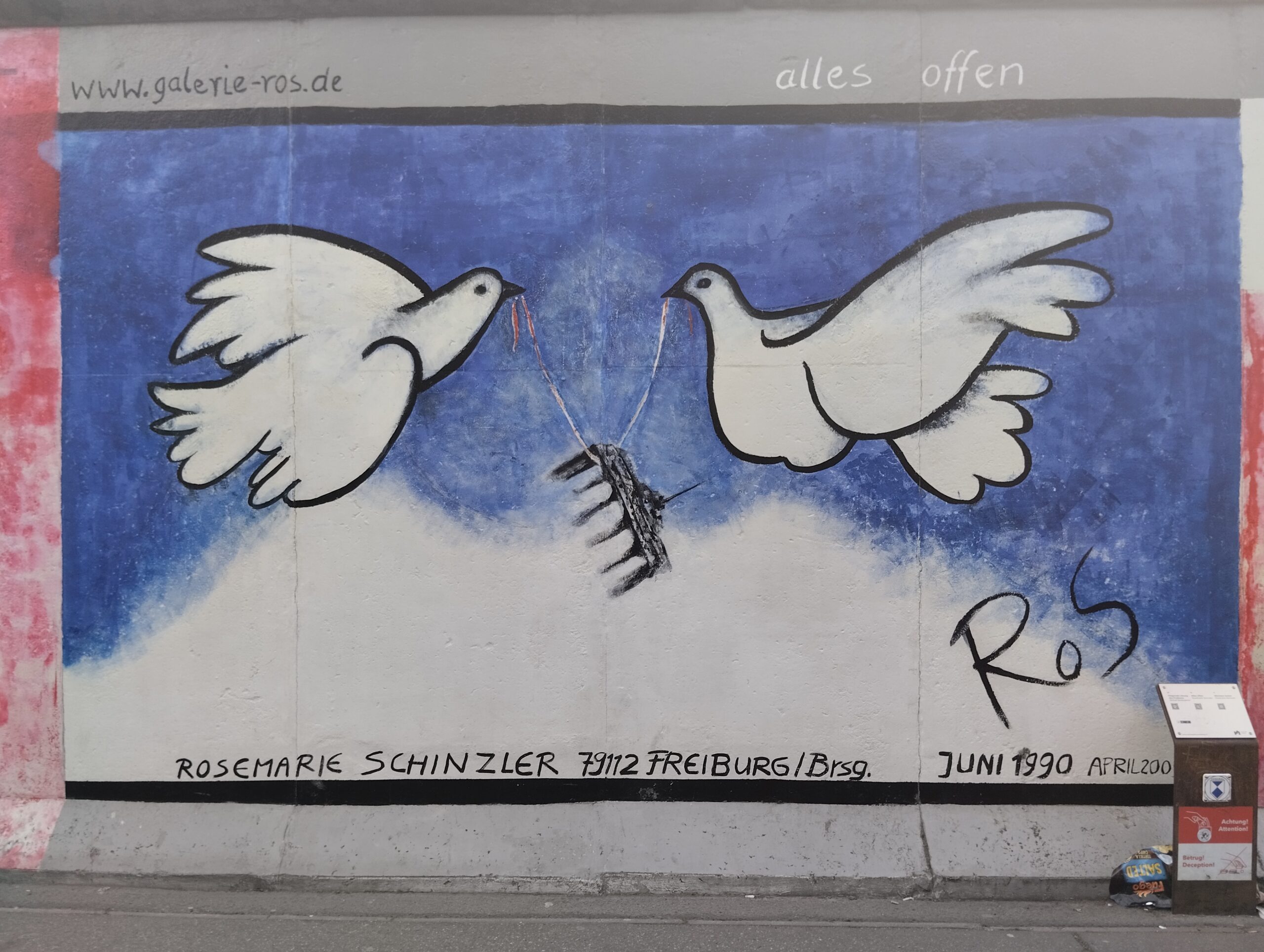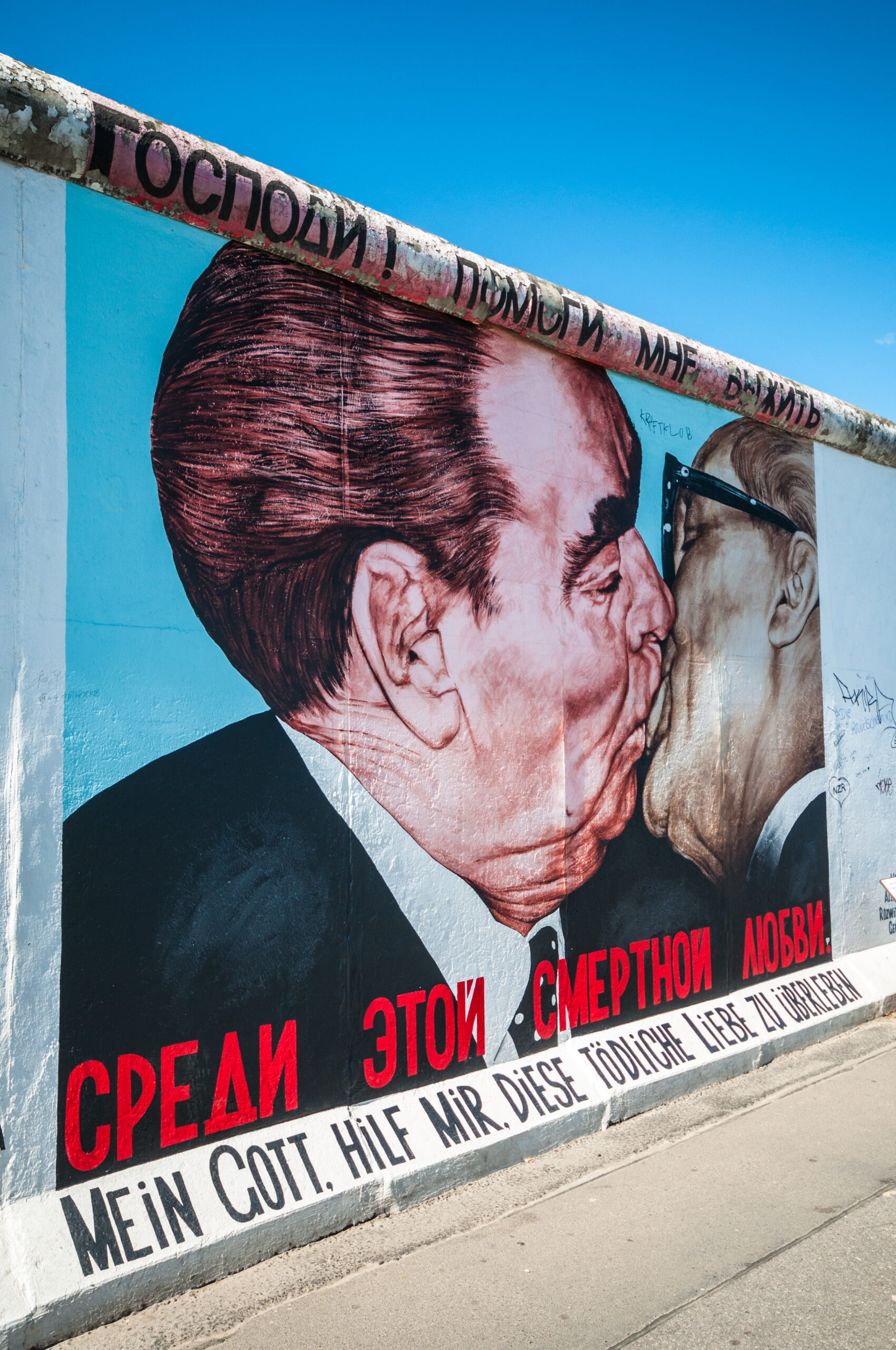 Και έφθασε η ώρα για βόλτα στο μεγαλύτερο κομμάτι του Τείχους που έχει σωθεί σχεδόν ακέραιο από το 1990 μέχρι σήμερα. Στους δρόμους του πρώην ανατολικό Βερολίνου και ακριβώς δίπλα στις ανατολικές όχθες του ποταμού Spree, θα δείτε το πασίγνωστο East Side Gallery. 1,3 χιλιόμετρα τσιμεντένιου τοίχου που «παραδόθηκαν» μεταξύ 1989-1990 στην φαντασία δεκάδων καλλιτεχνών από όλο τον κόσμο που ήθελαν να ξεδιπλώσουν το ταλέντο τους στο σύμβολο του Ψυχρού Πολέμου. Το αποτέλεσμα; Μια υπαίθρια γκαλερί με πρωτότυπα γκράφιτι πολιτικοκοινωνικής θεματολογίας που αντικατοπτρίζουν το κλίμα της εποχής και έχουν εξελιχθεί σε μερικά από τα πιο επισκέψιμα υπαίθρια artworks του πλανήτη με γνωστότερο το γκράφιτι του Ρώσου Dmitri Vrubel που απεικονίζει το ιστορικό φιλί Μπρέζνιεφ-Χόνεκερ το 1979, ενώ μπορείτε, άμα θέλετε, να περπατήσετε στην νεκρή ζώνη του Τείχους ή απλά να αράξετε με μια μπίρα στο χέρι.