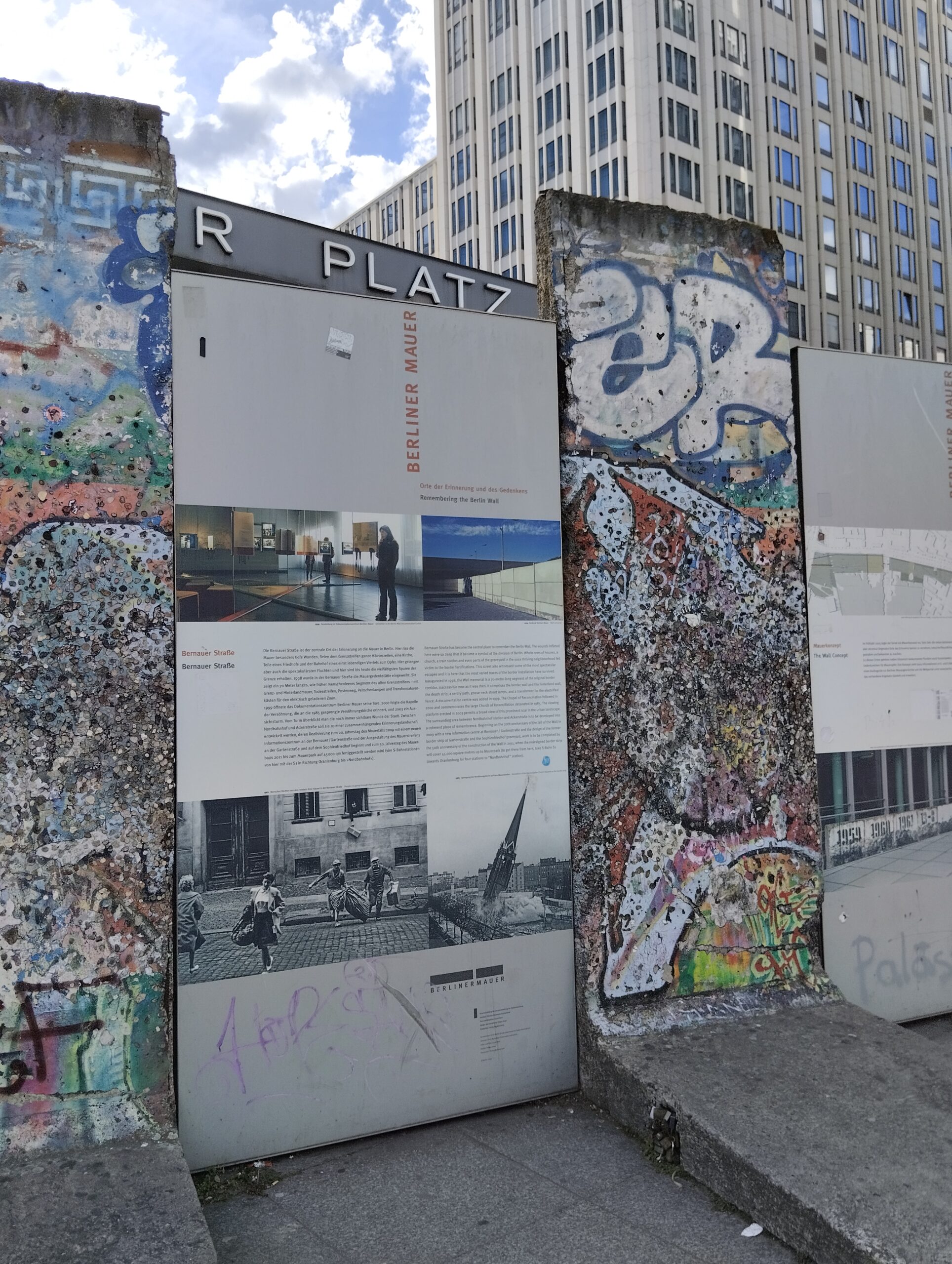 Αφήνοντας πίσω το καταπληκτικό Mauerpark, κατευθυνόμαστε νοτιοδυτικότερα στην πλατεία Potsdam. Η πλατεία με το ιστορικό όνομα ήταν από τα πρώτα spots του Βερολίνου που βίωσε την έξαψη της επανένωσης της πόλης, καθώς για δεκαετίες ήταν διχοτομημένη, μιας και το Τείχος περνούσε ακριβώς από το κέντρο της. Αν και η σημερινή όψη της πλατείας δεν έχει καμία απολύτως σχέση με τις ασπρόμαυρες φωτογραφίες του Ψυχρού Πολέμου, εδώ θα βρείτε μερικά ελάχιστα τσιμεντένια κομμάτια του Τείχους ακριβώς λίγο πιο έξω από τον κεντρικό σιδηροδρομικό σταθμό. Ανάμεσα στα λίγα σωζόμενα κομμάτια, έχουν στηθεί μικροί επεξηγηματικοί πίνακες για την ιστορία του Τείχους γεμάτοι με ιστορικές φωτογραφίες εποχής. Εδώ κοντά, θα δείτε και το Topography of Terror, το κέντρο τεκμηρίωσης της σύγχρονης ιστορίας της πόλης, όπου στον εξωτερικό χώρο θα μπορέσετε να περιηγηθείτε σε ένα μεγάλο κομμάτι του Τείχους και της σκοτεινής ιστορίας του Βερολίνου.