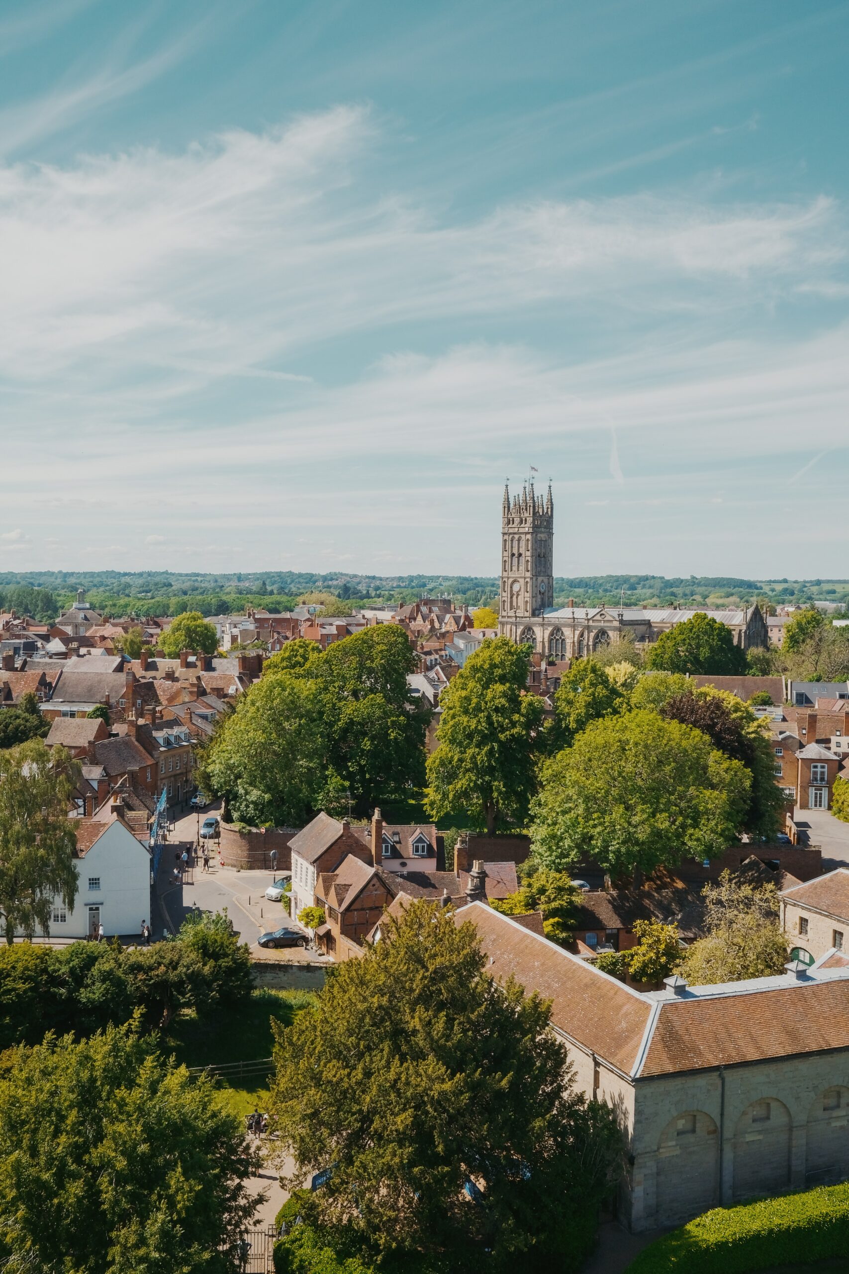 Στα βορειοδυτικά του κάστρου τώρα, βρίσκεται η εντυπωσιακή εκκλησία της Παναγίας, αντιπροσωπευτικό δείγμα της αγγλικής γοτθικής αρχιτεκτονικής, που ιδρύθηκε το 1123 από τον Roger de Newburgh, τον κόμη του Warwick. Είναι πραγματικά τεράστια και διαθέτει εκπληκτικά βιτρό, ενώ το παρεκκλήσι Beauchamp του 15ου αιώνα είναι ίσως ακόμα πιο όμορφο από την κεντρική αίθουσα της εκκλησίας. Ο πύργος της φθάνει τα 40 μέτρα περίπου και μπορείτε να ανεβείτε και να θαυμάσετε την πόλη και το κάστρο από ψηλά. Ο ναός και ο πύργος καταστράφηκαν στη μεγάλη πυρκαγιά του Warwick το 1694 και ξαναχτίστηκαν το 1704 από τους αδελφούς Φράνσις και Γουίλιαμ Σμιθ.