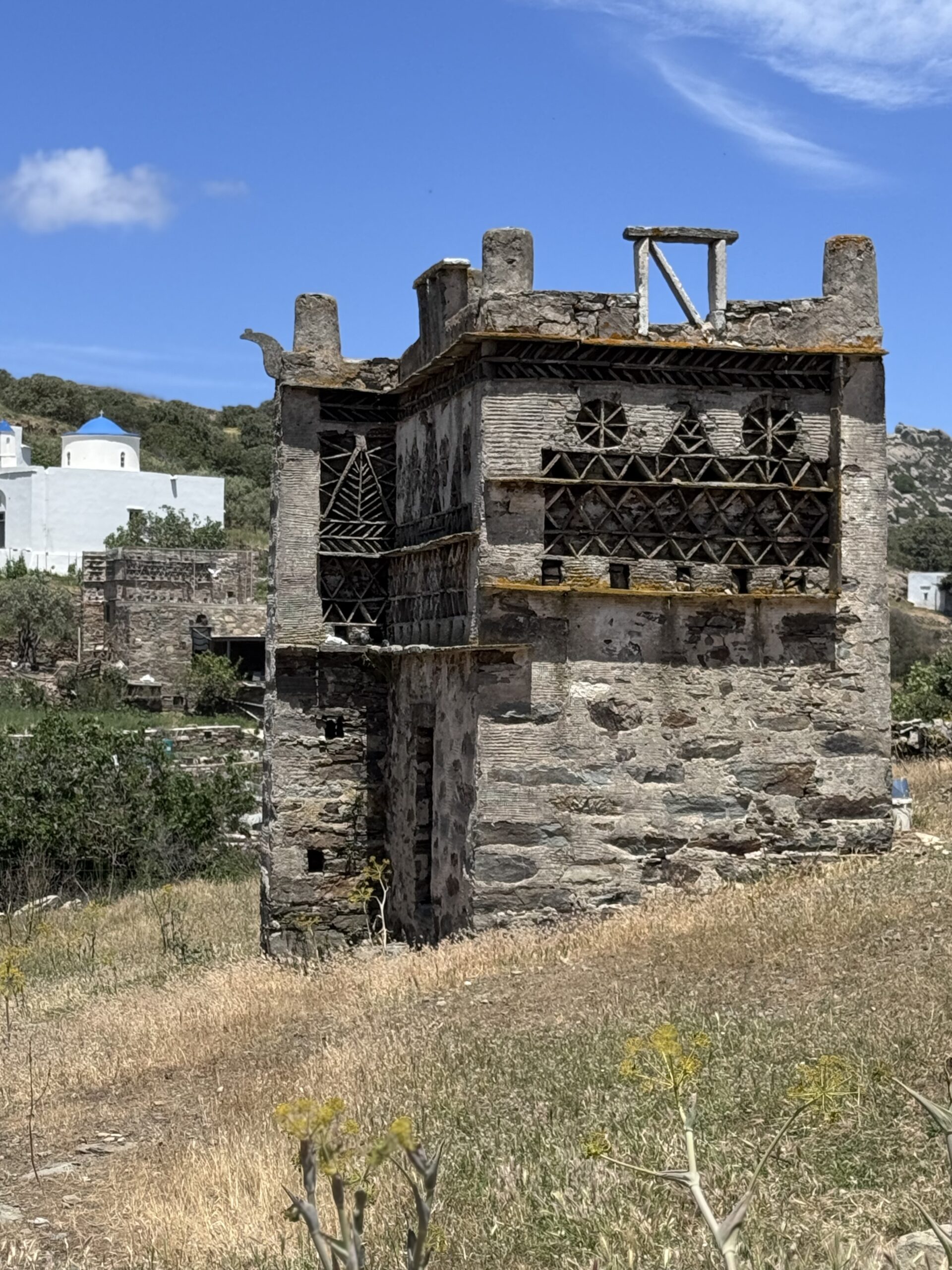 Από τον Πύργο, μεταφερθήκαμε στο χωριό Ταραμπάδος: εκεί μας περίμενε ο κος Νικηφόρος, πολιτικός μηχανικός και πρώην δήμαρχος της περιοχής, για να μας μιλήσει για τους περιστεριώνες, τη μακρά ιστορία τους και τη σύνδεσή τους με το νησί. Μαζί με τον κ. Νικηφόρο, περπατήσαμε ένα μικρό μονοπάτι γεμάτο φύση, για να δούμε από κοντά αυτά τα πανέμορφα κτίρια -υπέροχα δείγματα λαϊκής αρχιτεκτονικής, κληρονομιά των Ενετών.
