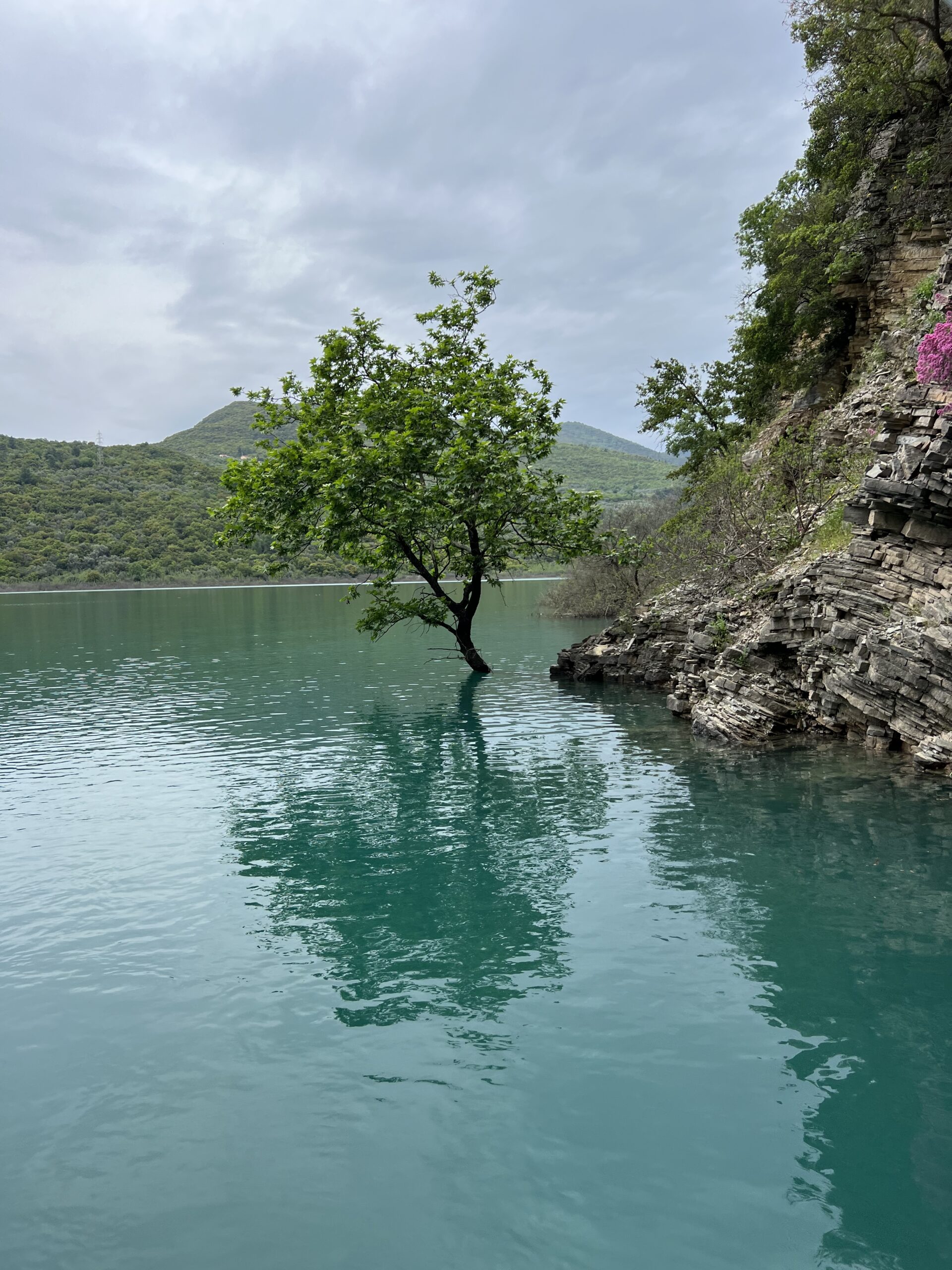 Από την πανέμορφη και ζωντανή Δυτική Φραγκίστα, κατεβήκαμε στον Άγιο Γεώργιο και κατευθυνθήκαμε στο παλιό Πορθμείο για να πάρουμε το ταχύπλοο για την βόλτα στη λίμνη. Πρόκειται για την μεγαλύτερη τεχνητή λίμνη της χώρας μας, η οποία δημιουργήθηκε το 1965, όταν κατασκευάστηκε το φράγμα των Κρεμαστών σε μία περιοχή όπου συνέρρεαν οι ποταμοί Αχελώος, Αγραφιώτης, Μέγδοβας, και Τρικεριώτης. Θεωρείται η πιο καθαρή λίμνη και η πέμπτη καθαρότερη σε παγκόσμιο επίπεδο, ενώ ολόκληρη η περιοχή είναι ενταγμένη στο πρόγραμμα Natura 2000.