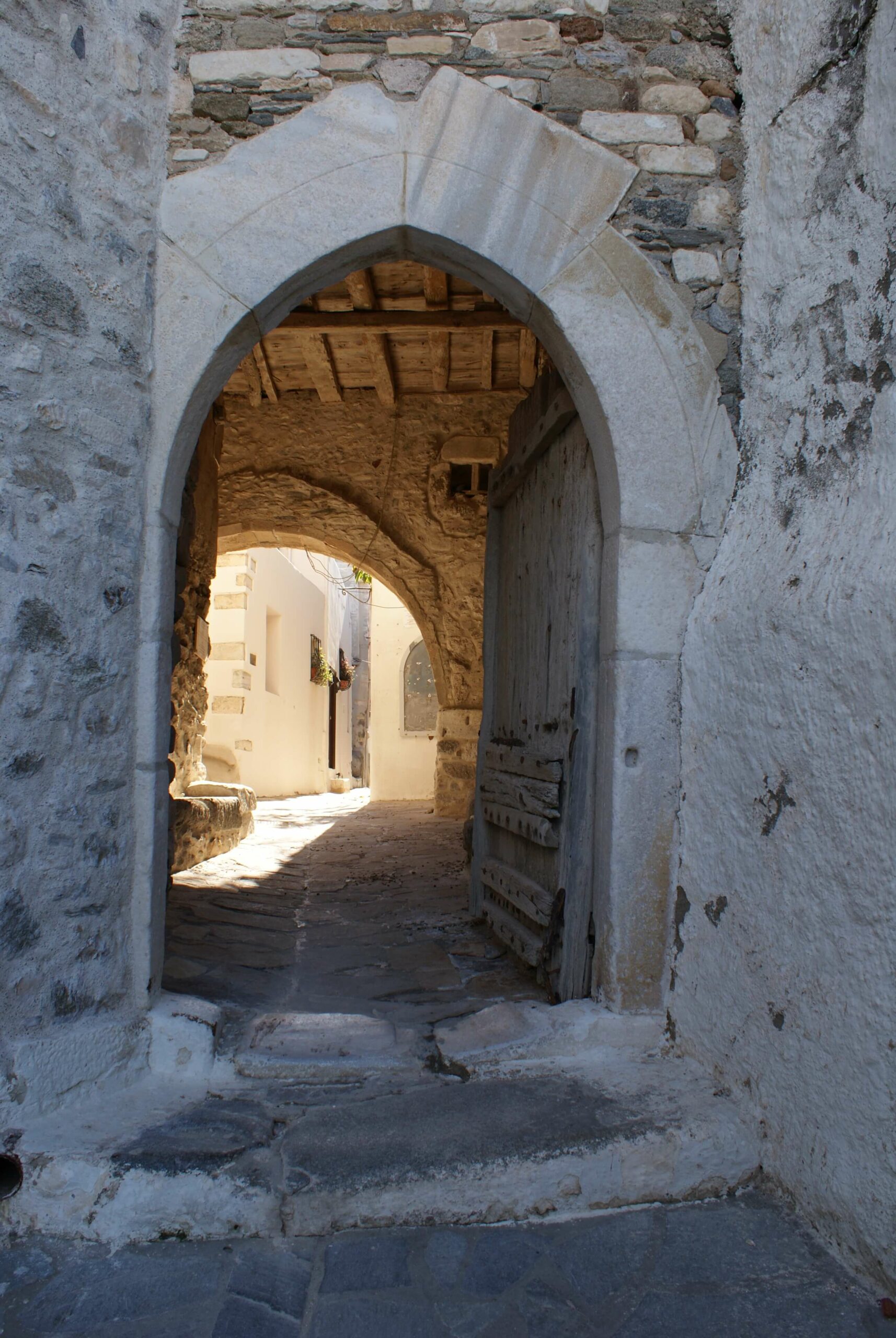 Στην καρδιά του μεγαλύτερου ελαιώνα των Κυκλάδων και σε μια περιοχή που δικαίως ονομάζεται ο Μυστράς των Κυκλάδων, λόγω των πολυάριθμων βυζαντινών εκκλησιών που υπάρχουν διάσπαρτες σ’ όλο τον κάμπο της Τραγαίας, στέκει ένα χωριουδάκι σαν σκηνικό από ταινία εποχής. Πανέμορφα νεοκλασικά, καλντερίμια, παλιά εμπορικά μαγαζιά που μετατράπηκαν σε γκαλερί, πετρόκτιστες γωνιές, και όλα αυτά σε ένα τοπίο μαγικό.