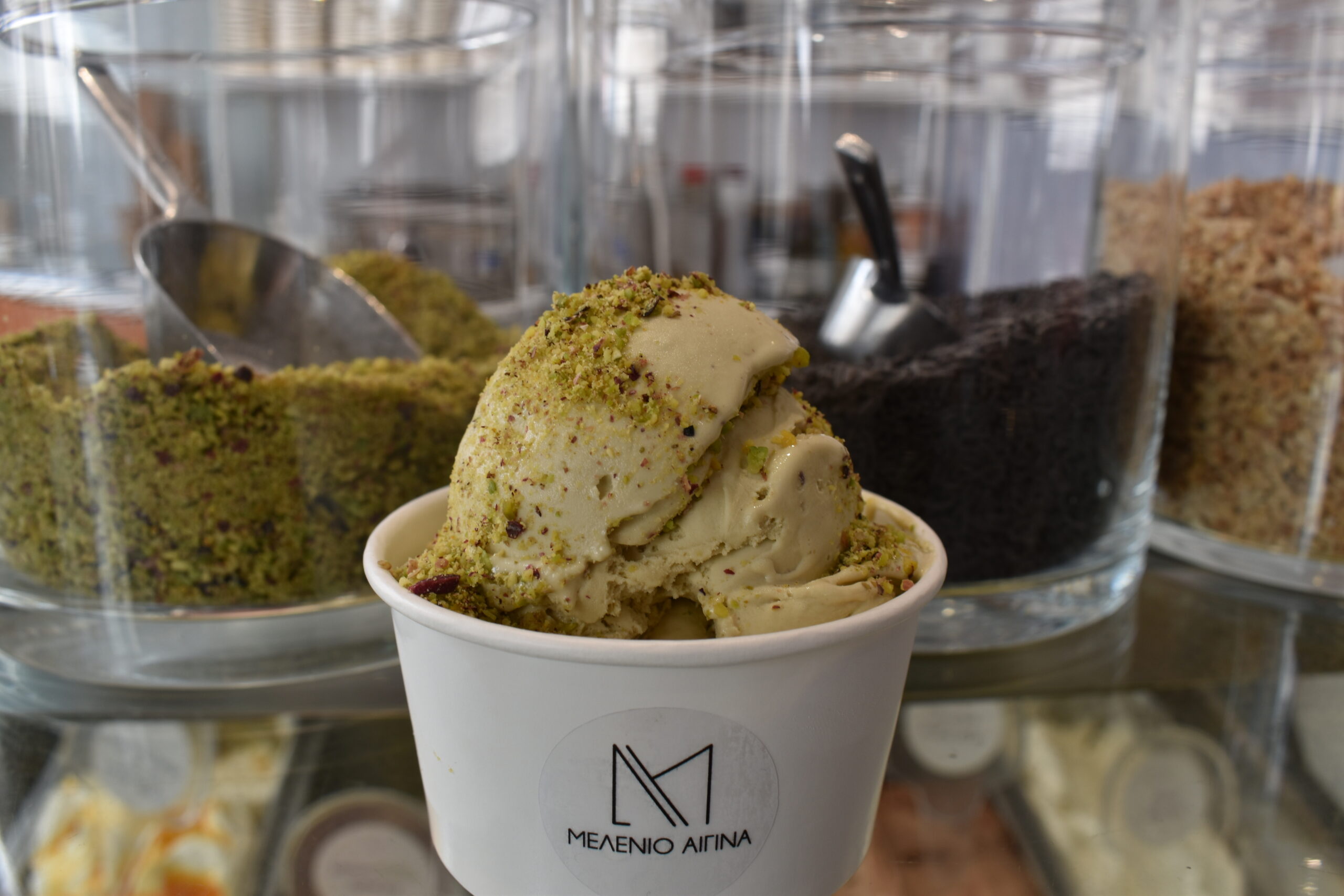Εξαιρετικής ποιότητας κεράσματα και γλυκές μπουκιές με βάση το φιστίκι θα προμηθευτείτε και στο Αιάκειον, ένα ζαχαροπλαστείο-καφέ ορόσημο στο νησί, με ιστορία έξι δεκαετιών και με αδιαμφισβήτητη δεξιοτεχνία στη δημιουργία γλυκών και παγωτού με φιστίκι, σε διάφορες γεύσεις, όπως Φιστίκι gourmet, αλλά και Παγωτό-γιαούρτι με ολόκληρα φιστίκια. Για μια μπάλα παγωτό περάστε οπωσδήποτε κι από ζαχαροπλαστείο Μελένιο και μη ξεχάσετε να ζητήσετε έξτρα τριμμένο φιστίκι σαν topping. Αλλιώς, δοκιμάστε τις υπέροχες πάστες τους που περιέχουν φιστίκι σε διάφορους συνδυασμούς γεύσεων. Πολύ ελαφριά και φρουτένια αυτή με τον αρωματικό καρπό και δροσιστικό βατόμουρο, σου φτιάχνει τη διάθεση και μόνο με το απαλό πράσινο χρώμα της. Για αλμυρές γευστικές προτάσεις με βάση το φιστίκι, ακολουθήστε τον αναγνωρισμένο chef Δημήτρη Κάππο στις γαστρονομικές του αναζητήσεις. Στο εστιατόριό του Κάππος Έτσι δοκιμάστε τα ζυμαρικά al pesto που αποκτούν νέα γεύση, με τα αιγινήτικα φιστίκια να αντικαθιστούν το κουκουνάρι στη διάσημη Ιταλική σάλτσα. Κι αν νομίζετε ότι το παρακάνατε με τα φιστίκια, σκεφτείτε ότι βρίσκεστε στην πηγή της καλύτερης ποιότητας κι ότι ο πλούτος των θρεπτικών συστατικών τους είναι bonus για την υγεία μας.