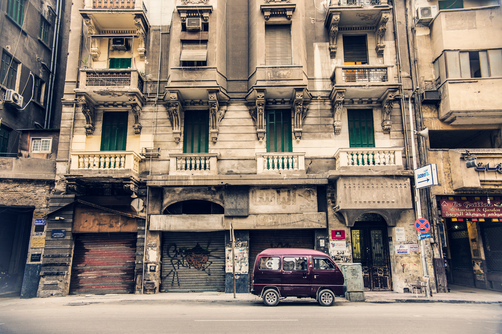 Εκατοντάδες αρχιτεκτονικά κοσμήματα ξεπροβάλουν σε κάθε γωνία περήφανα αλλά παραμελλημένα, μάρτυρες της προπολεμικής Αιγύπτου, ανάμεσα σε παράγκες μισοτελειωμένα κτήρια και εργατικές πολυκατοικίες χωρίς σοβάδες και με σπασμένα τζάμια. Η ομορφιά των κτηρίων αυτής της εποχής σε αιχμαλωτίζει αλλά και σε γεμίζει λύπη για τις καλύτερες εποχές που έχουν ζήσει αλλά και θα μπορούσαμε να ζήσουν ξανά.