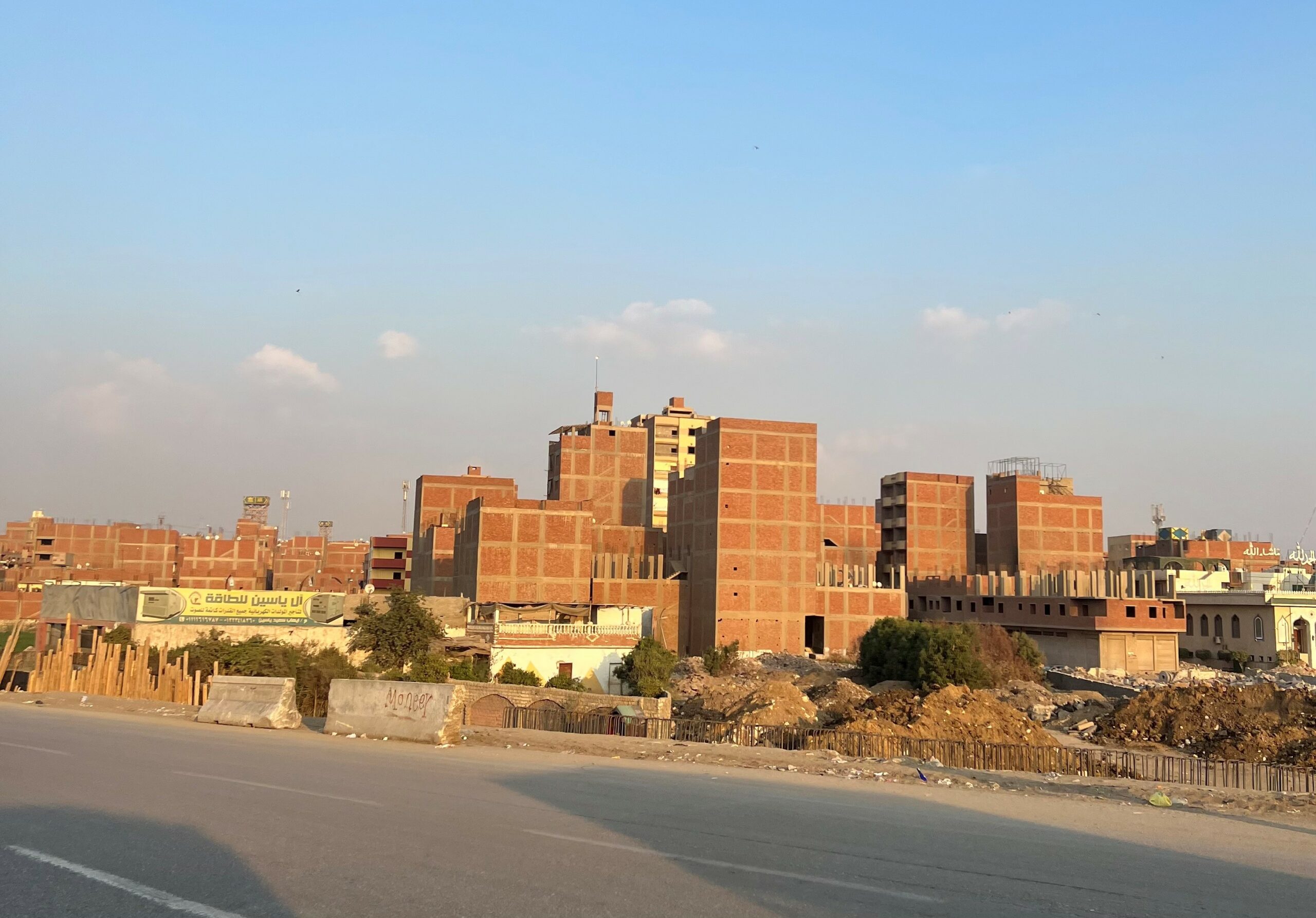 Ένα από τα πιο εντυπωσιακά πράγματα που είδα στο Κάιρο είναι οι κεραμιδένιες πολυκατοικίες. Σχεδόν όλα τα νέα σπίτια που χτίζονται στο παλαιό Κάιρο παραμένουν με τούβλα και με τα σίδερα ανοιχτά στην οροφή για λόγους οικονομίας. «Δεν τους ενδιαφέρει η εξωτερική εμφάνιση μου λέει ο ξεναγός μας, μέσα είναι πολύ ανετά αλλά η πρόσοψη τους είναι αδιάφορη»