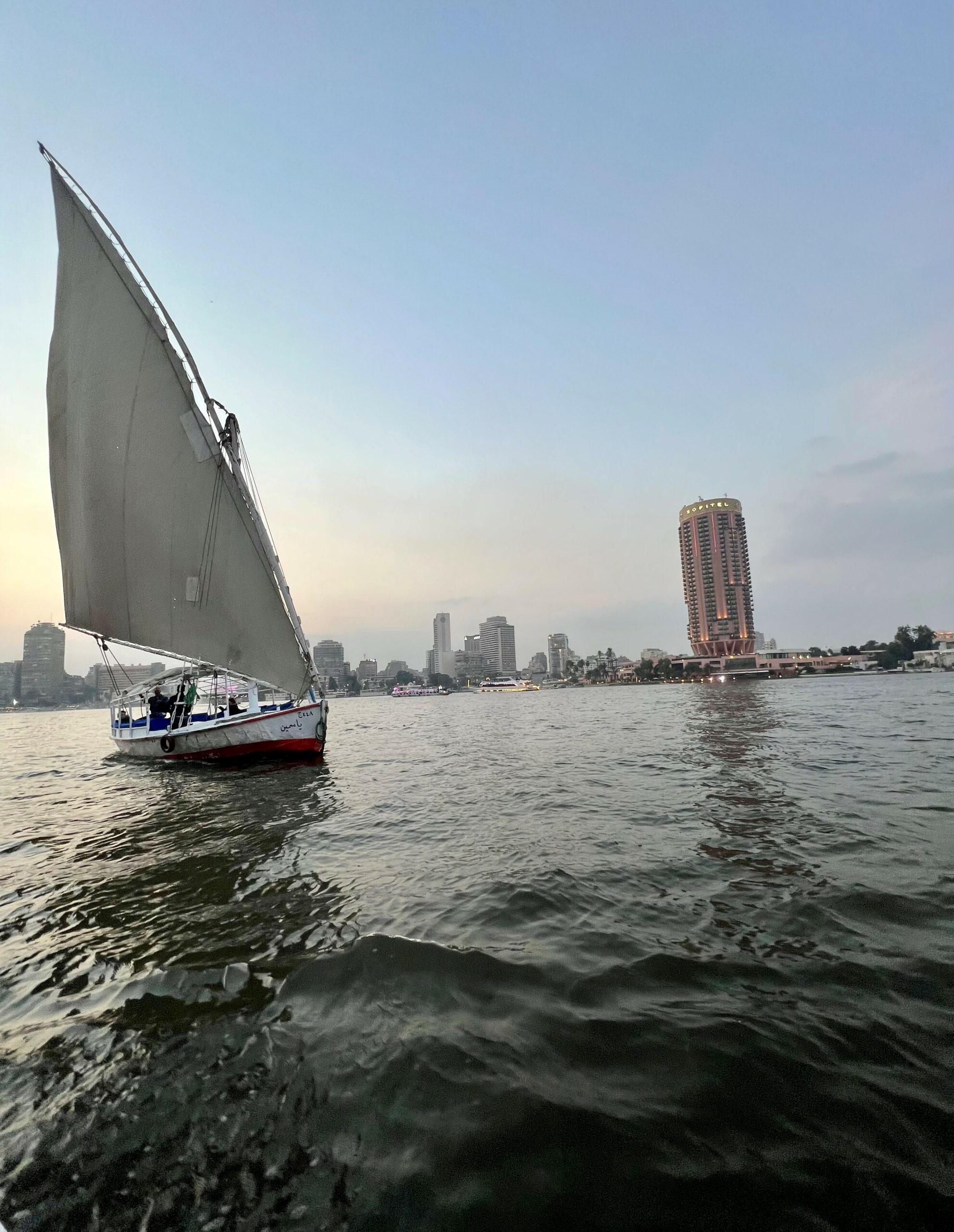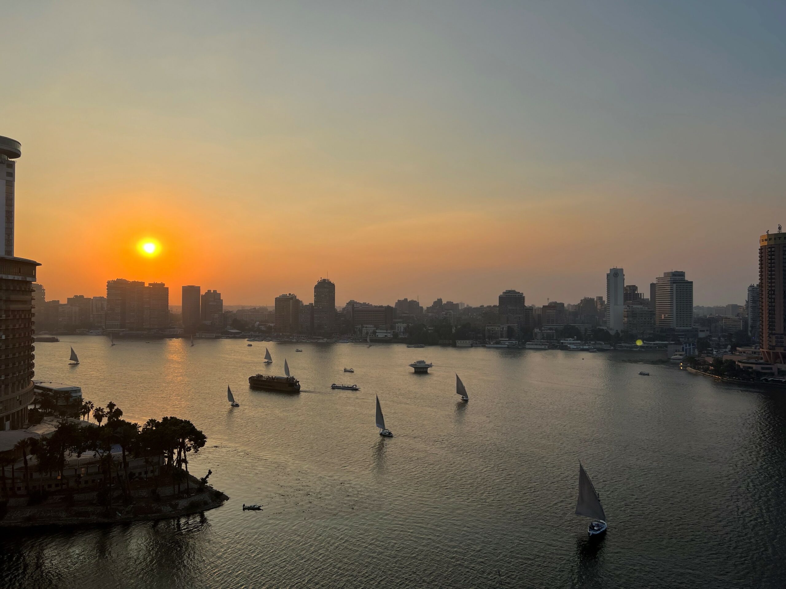 Μείναμε στο ξενοδοχείο Four Seasons, Nile Plaza στο Νείλο, που είναι η καλύτερη επιλογή στην πόλη γιατί είσαι ακριβώς πάνω στο ποτάμι και από το υπνοδωμάτιο αλλά και από όλα τα σημεία του ξενοδοχείο βλέπεις να ξεδιπλώνονται τα υπέροχα χρώματα και η ζωή του Νείλου.