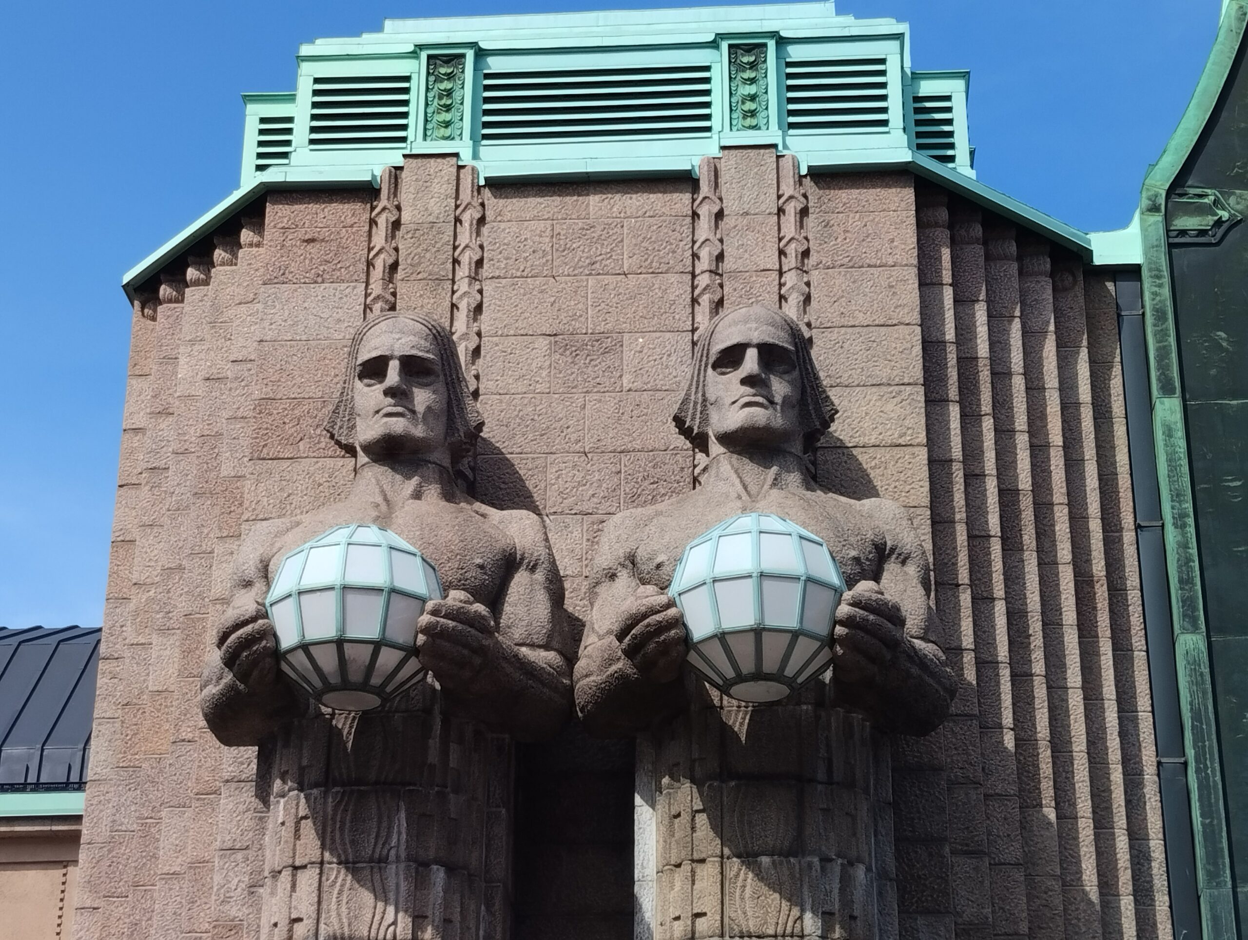 Επιβλητικός, με μια αυστηρή μεγαλοπρέπεια που ενισχύεται από τη μινιμαλιστική γρανιτένια αισθητική του, ο Κεντρικός Σιδηροδρομικός Σταθμός ξεχωρίζει εύκολα για τα τέσσερα πελώρια αγάλματα στην πρόσοψή του. Δημιουργίες του γλύπτη Emil Wikström, οι ανθρώπινες αυτές μορφές στέκουν αγέρωχες, κρατώντας φωτεινές σφαίρες που λειτουργούν ως φανάρια και έχουν γίνει το πιο αναγνωρίσιμο στοιχείο του σταθμού, μια σιωπηλή αλλά εντυπωσιακή υποδοχή για κάθε ταξιδιώτη που φτάνει ή αναχωρεί από το Ελσίνκι.