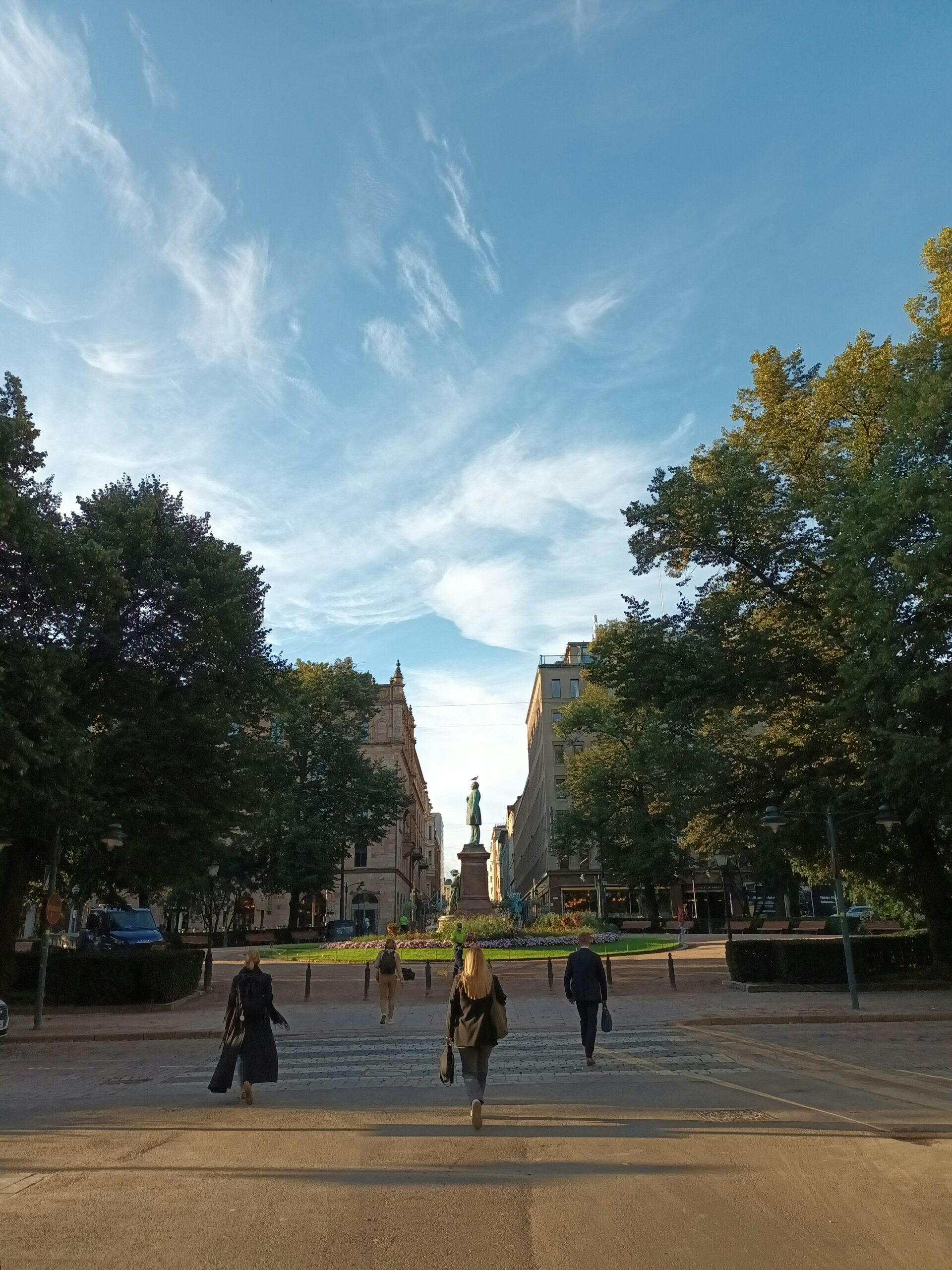 Δεξιά και αριστερά του πάρκου, ήσυχοι δρόμοι με χαλαρή κίνηση και τα χαρακτηριστικά πράσινα τραμ με τις κίτρινες λεπτομέρειες δημιουργούν το σκηνικό μιας ήρεμης πόλης, που δύσκολα θυμίζει πολύβουη πρωτεύουσα. Λίγο πιο πέρα, η πλατεία του κατάλευκου Λουθηρανικού Καθεδρικού δεσπόζει στο κέντρο του Ελσίνκι. Στο φως του δειλινού, το μνημείο αποπνέει μια αύρα που παραπέμπει στην Ανατολική Ευρώπη -διόλου τυχαία, αφού η πλατεία και τα γύρω κτίρια σχεδιάστηκαν στις αρχές του 19ου αιώνα στα πρότυπα της Αγίας Πετρούπολης, σε μια εποχή που το Ελσίνκι δεν ήταν παρά ένα επαρχιακό λιμάνι της Ρωσικής Αυτοκρατορίας.