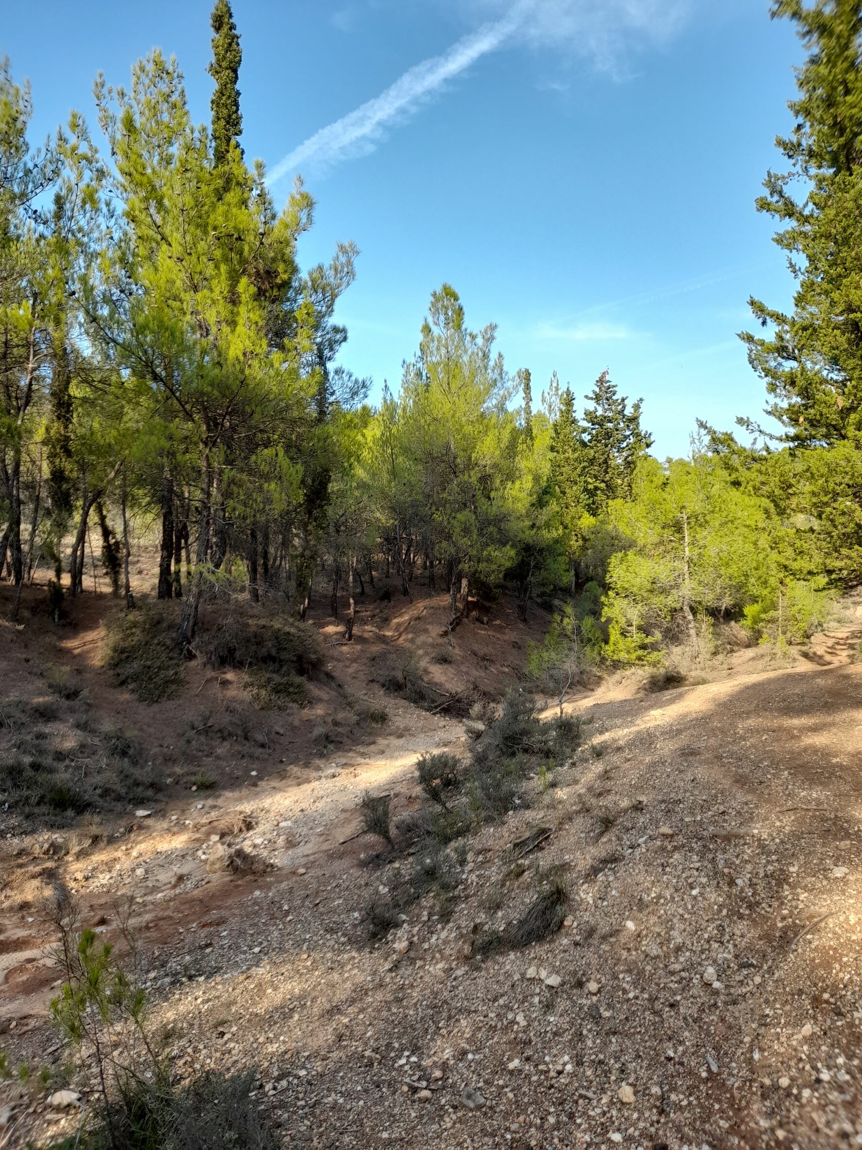 Η διαδρομή φτάνει σε μέγιστο υψόμετρο 415 μ. χαρίζοντας υπέροχη θέα στην περιοχή και περνάει από φαράγγια, μονοπάτια και δασικούς δρόμους, πάντα ανάμεσα στα πεύκα. Μια μικρότερη διαδρομή είναι αυτή των 8,4 χλμ. που ξεκινάει επίσης από το θέατρο Μοσχοποδίου σε υψόμετρο 265 μ. Τα μονοπάτια δεν είναι σηματοδοτημένα και καλό είναι να συμμετέχετε στις οργανωμένες πεζοπορίες του ΣΧΟΠ Θήβας (sxopthivas.com). Από την άλλη οι δασικοί χωμάτινοι δρόμοι και μέρος των μονοπατιών είναι ιδανικά σημεία για τους λάτρεις του ποδηλάτου βουνού αλλά και του moto cross.