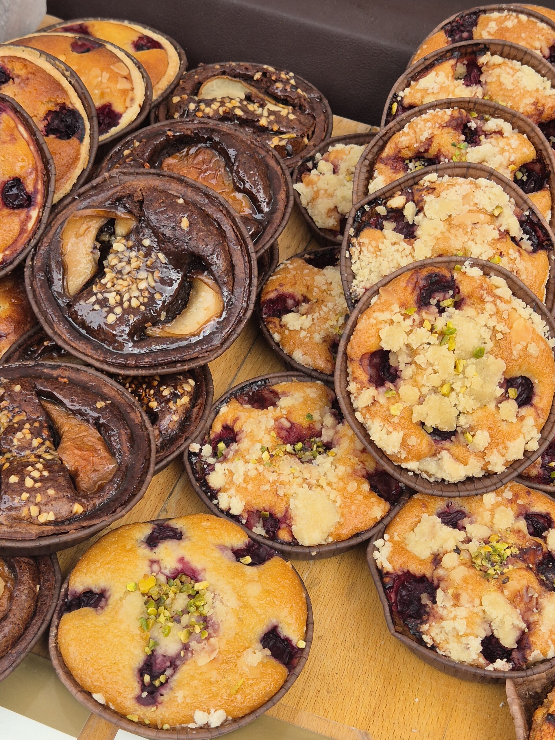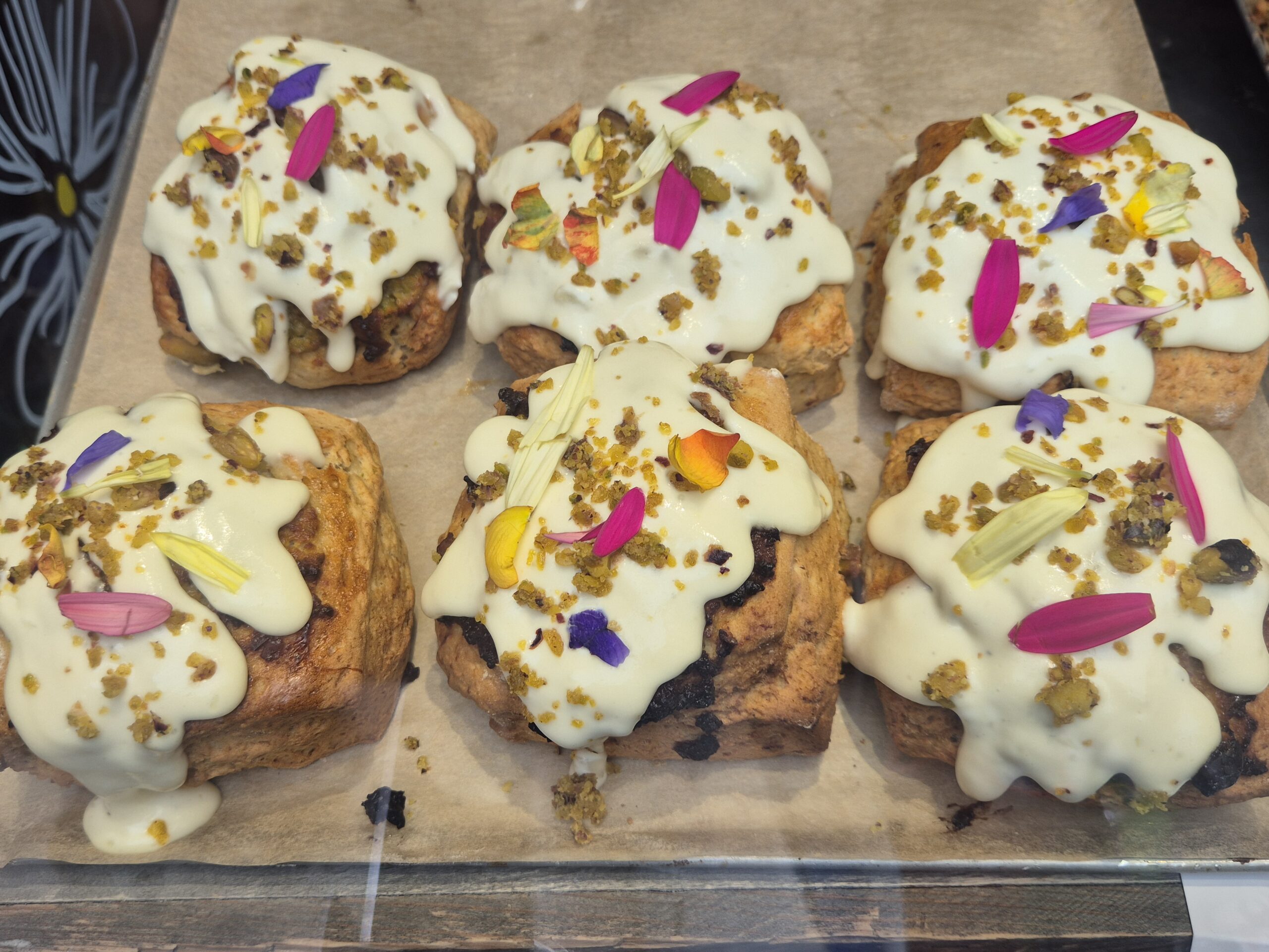Στο εσωτερικό, στον πάγκο όπου θα δώσετε την παραγγελία σας, θα βρείτε μια απίθανη συλλογή από τα πιο εκλεκτά αρτοποιήματα, που ξεφουρνίζονται διαρκώς. Τα ατομικά κέικ με φιστίκι, λεμόνι και ροδοπέταλα ή με καρύδια pecan και κανέλα, όπως και τα cinnamon rolls ή τα brownies, είναι σταθερή αξία: τα τελευταία έχουν ψηφιστεί από την Evening Standard ως τα καλύτερα του Λονδίνου, φτιαγμένα με εκλεκτή σοκολάτα Valrhona. Από τις καλύτερες αλμυρές επιλογές ξεχωρίζει το mini burger με παναρισμένο κοτόπουλο και παρμεζάνα, αλλά και το παραδοσιακό ρολό πίτας με λουκάνικο.
