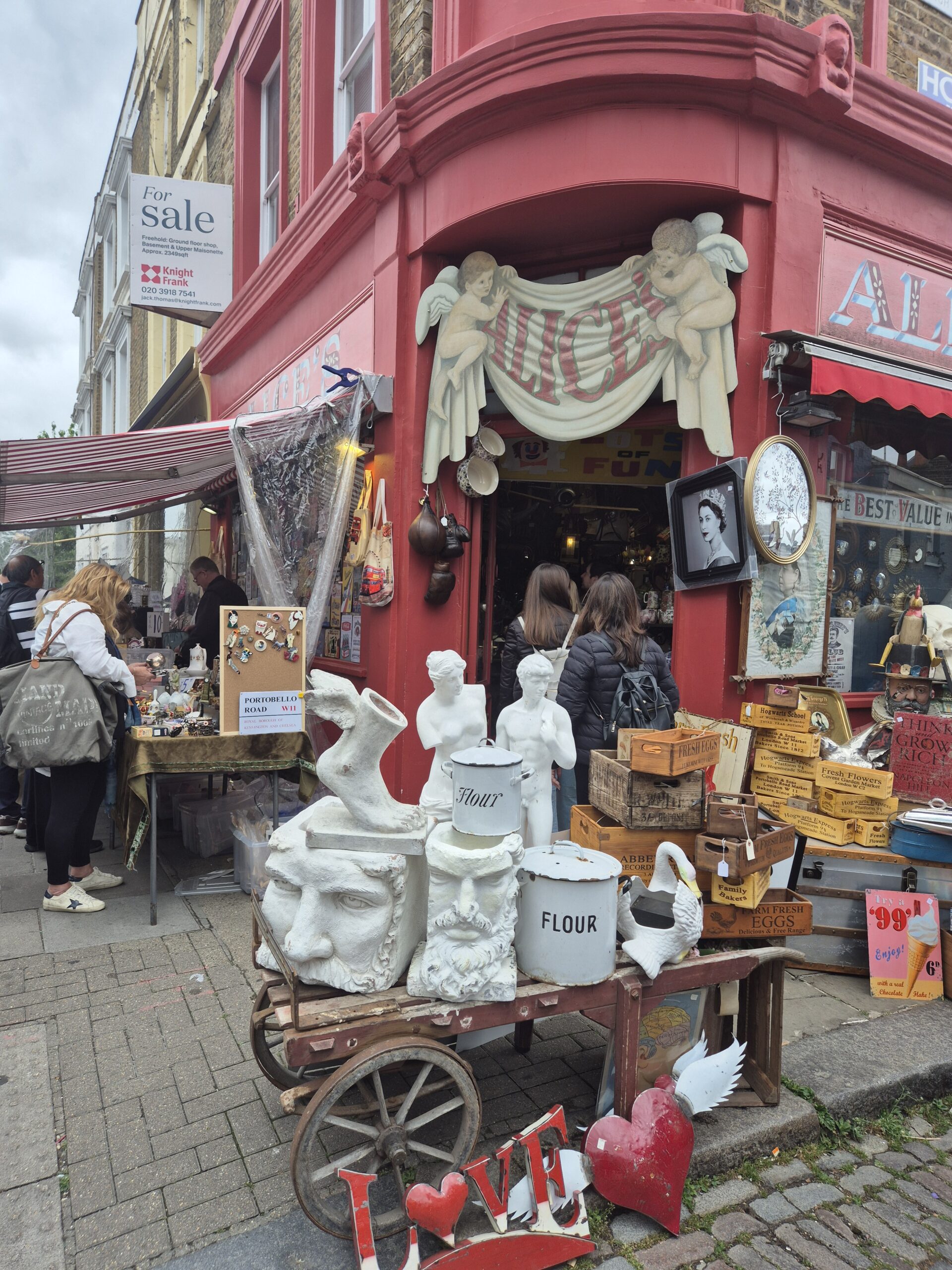 Ο πραγματικός θησαυρός όμως, και ένα από τα διασημότερα καταστήματα του Λονδίνου, βρίσκεται στη δεξιά πλευρά του δρόμου και δεν είναι άλλο από τη γωνιακή, κατακόκκινη αντικερί Alice’s. Αν σας φαίνεται γνώριμο, δεν κάνετε λάθος: είναι το κατάστημα με τις αντίκες που εμφανίζεται σε πολλές σκηνές της ταινίας Paddington, με το γνωστό αξιαγάπητο αρκουδάκι να το επισκέπτεται συχνά. Αν ο φιλικός ιδιοκτήτης δεν είναι πολύ απασχολημένος, θα σας διηγηθεί πρόθυμα λεπτομέρειες για την ταινία: πώς η πρόσοψη εμφανίζεται σε αρκετά πλάνα, ενώ το εσωτερικό ανασκευάστηκε σε στούντιο.