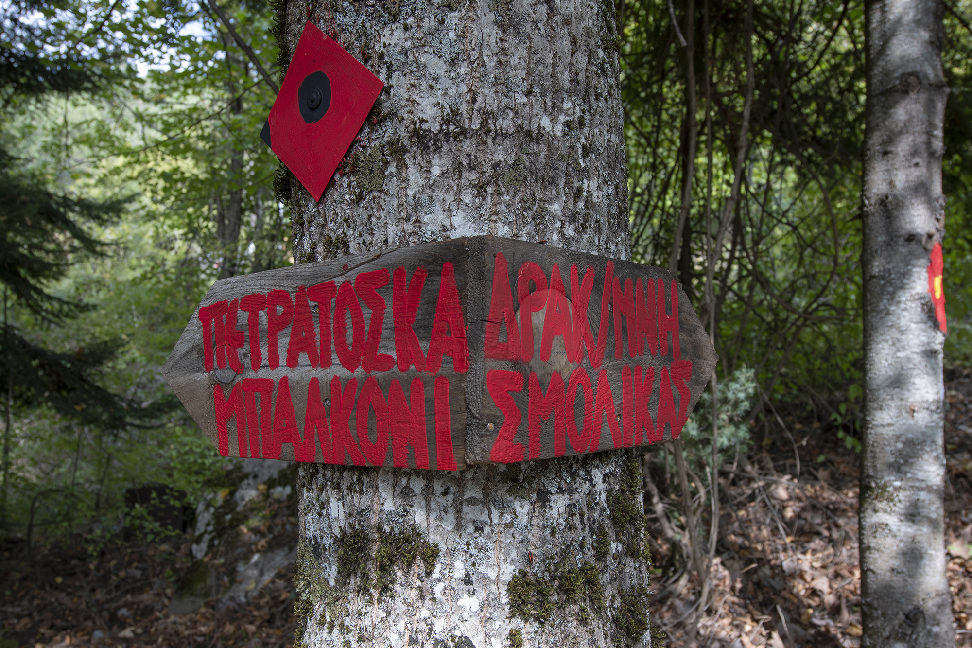 Ξεκινήσαμε νωρίς από την Κόνιτσα όπου στην παρέα μας εντάχθηκε και ένας άλλος Αλέξανδρος, ο Νικολόπουλος, ο οποίος διατηρεί στην περιοχή γραφείο εναλλακτικών δραστηριοτήτων, το Mountainvein (mountainvein.gr). Καθ` όλη τη διάρκεια της διαδρομής μάς έδινε χρήσιμες πληροφορίες για τις πλούσιες επιλογές δραστηριοτήτων, αφήνοντας μας να καταλάβουμε την μεγάλη του αγάπη για τη φύση και την περιοχή. Περνώντας τα πρώτα χιλιόμετρα έχουμε για τα καλά βρεθεί στην καρδιά του ορεινού οικοσυστήματος του Σμόλικα. Περνάμε από το χωριό Πηγή, που παλαιότερα ονομαζόταν Πεκλάρι, και συνεχίζουμε παρατηρώντας την οργιώδη φύση, και την υψηλής αισθητικής διαδρομή. Φτάνουμε στον οικισμό του Ελεύθερου και απολαμβάνουμε το πανόραμα των βουνοκορφών της Τύμφης, αλλά και την χαράδρα του Αώου. Περνάμε το Παλαιοσέλι το οποίο βρίσκεται ανάμεσα σε πευκοδάση και δρυοδάση και κάνουμε μία μικρή στάση στην εκκλησία της Αγίας Παρασκευής, η οποία χτίστηκε το 1864 και είναι χαρακτηριστική, ως άλλος Πύργος της Πίζας, για την κλίση την οποία έχει και είναι εμφανής με γυμνό μάτι. Δεν είναι όμως μόνο αυτή η κλίση που την κάνει αξιοθέατο, καθώς διαθέτει ένα μοναδικής ομορφιάς ξυλόγλυπτο τέμπλο, αλλά και την πανέμορφα ζωγραφισμένη ξύλινη οροφή.