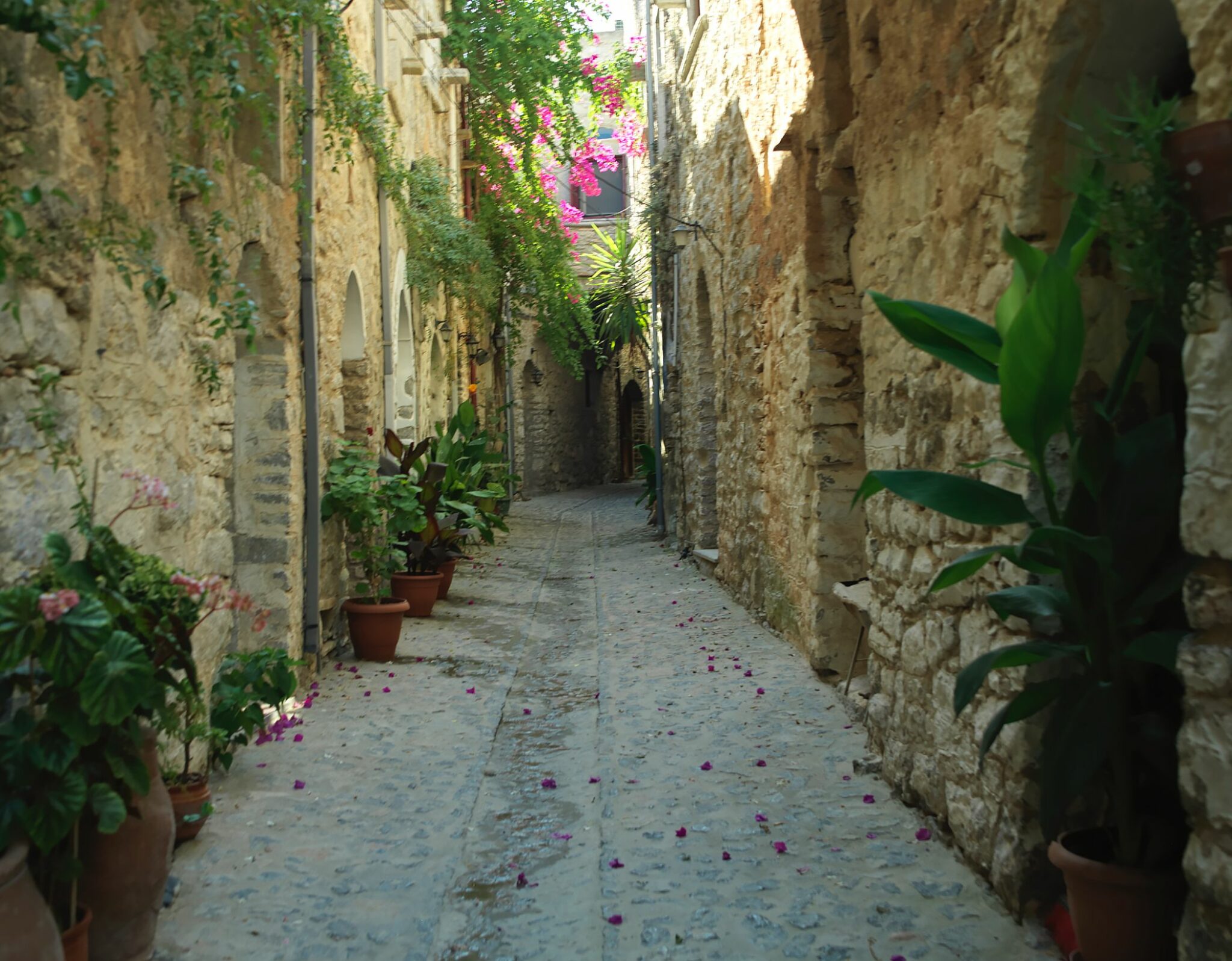 Η οδός Αγίου Γεωργίου, κύριος δρόμος του οικισμού που εξακολουθεί να ζει μέσα στο κάστρο, ζωντανή και δραστήρια, σας οδηγεί μέσα στην κουκλίστικη αυτή γειτονιά του Κάστρου, με τα μικρά διώροφα σπίτια, τους κιοσέδες, τις μικρές αυλές και τα στενά δρομάκια. Στη πλακόστρωτη και ατμοσφαιρική πλατεία του Φρουρίου, είναι ιδανική για καφέ ή μεζέ.