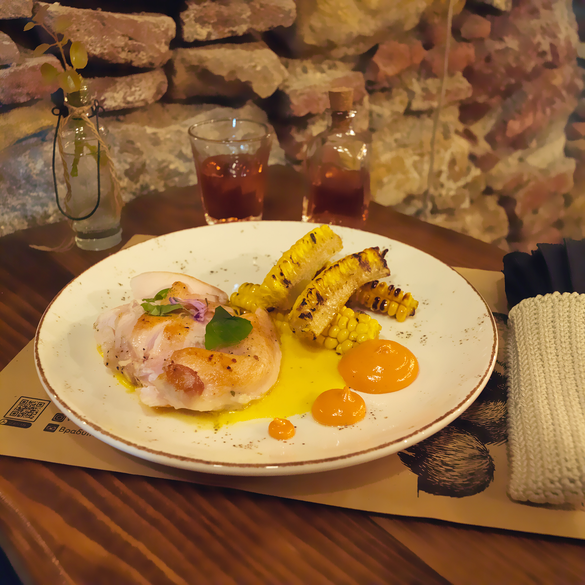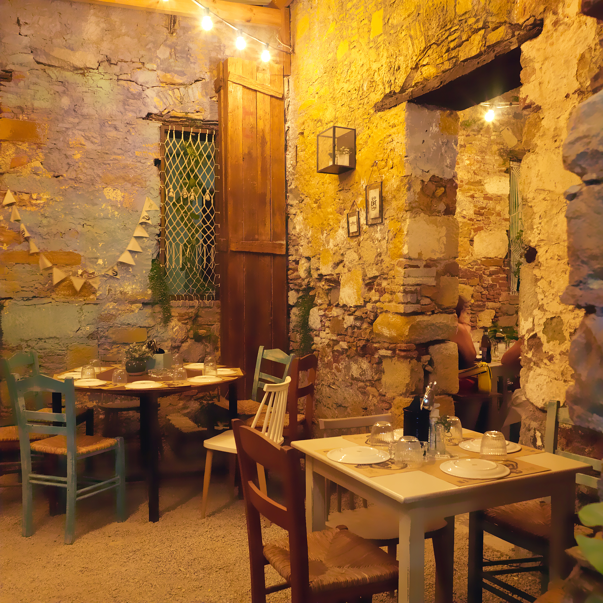 Ένα εστιατόριο ενταγμένο άψογα στο καστρικό περιβάλλον, με πέτρα και καμάρες που δίνουν την αίσθηση ότι γευματίζεις μαζί με τους Γατελούζους. Μια νεανική ομάδα βρίσκεται πίσω από τα τηγάνια και τις μαρμίτες και ετοιμάζει ευφάνταστες δημιουργίες, όπως την χοιρινή πανσέτα που την σερβίρει με σάλτσα από σύκα με ελληνικό καφέ, γκρεμολάτα από φρέσκα μυρωδικά, τσιπς πατάτας, μαριναρισμένη ντομάτα και φρούτα εποχής.