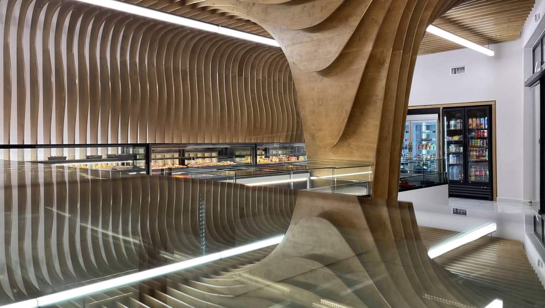 Λίγα μέτρα μετά το Αρίλογο ένας φούρνος με εκλεκτό καφέ μας υπενθύμισε τι σημαίνει καλή αρχιτεκτονική. Ο φούρνος του Καρνάρου, χρόνια σημείο αναφοράς για τα βουτήματα, τις τούρτες και τον μυρωδάτο καφέ του, αποφάσισε να φρεσκάρει την όψη του, και εμπιστεύτηκε το φρεσκάρισμα στον αρχιτέκτονα, καθηγητή στο πανεπιστήμιο της Πάτρας, κ. Βασίλη Στρουμπάκο. Και εγένετο ένα καινούριο στέκι.