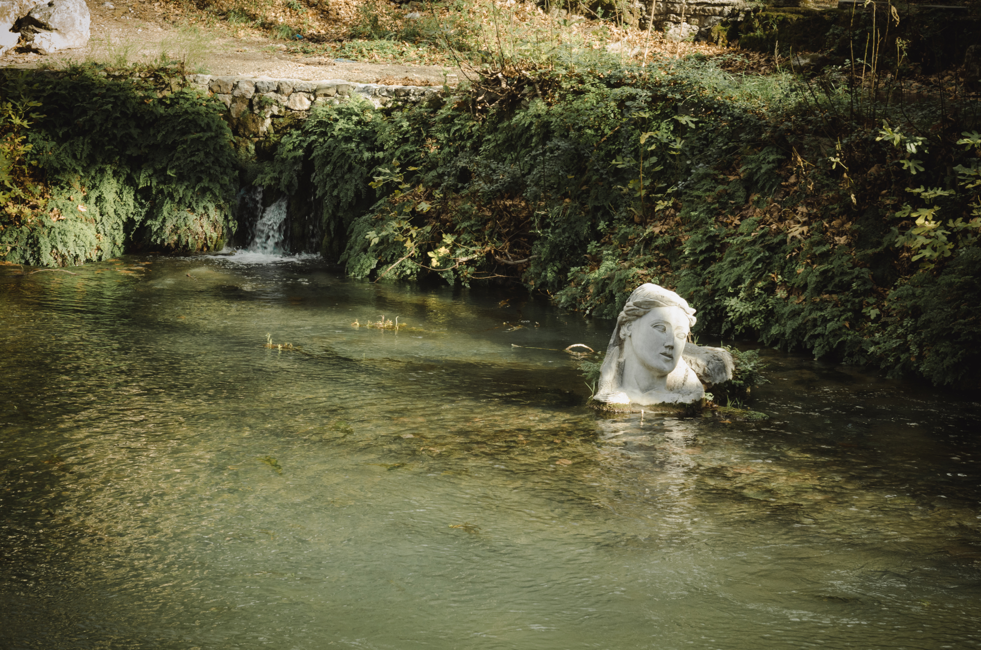 Η πυκνή βλάστηση που φτάνει μέχρι χαμηλά στις όχθες του ποταμού, οι μικροί βουεροί καταρράκτες που δημιουργούνται σε διαφορετικά επίπεδα, η προτομή της νύμφης Έρκυνας, έργο του Λιβαδειώτη γλύπτη Σπύρου Γουργιώτη, θεατρικά τοποθετημένη πάνω σε βράχο, σαν να αναδύεται από τα νερά, φτιάχνουν ένα μυθικό σκηνικό.