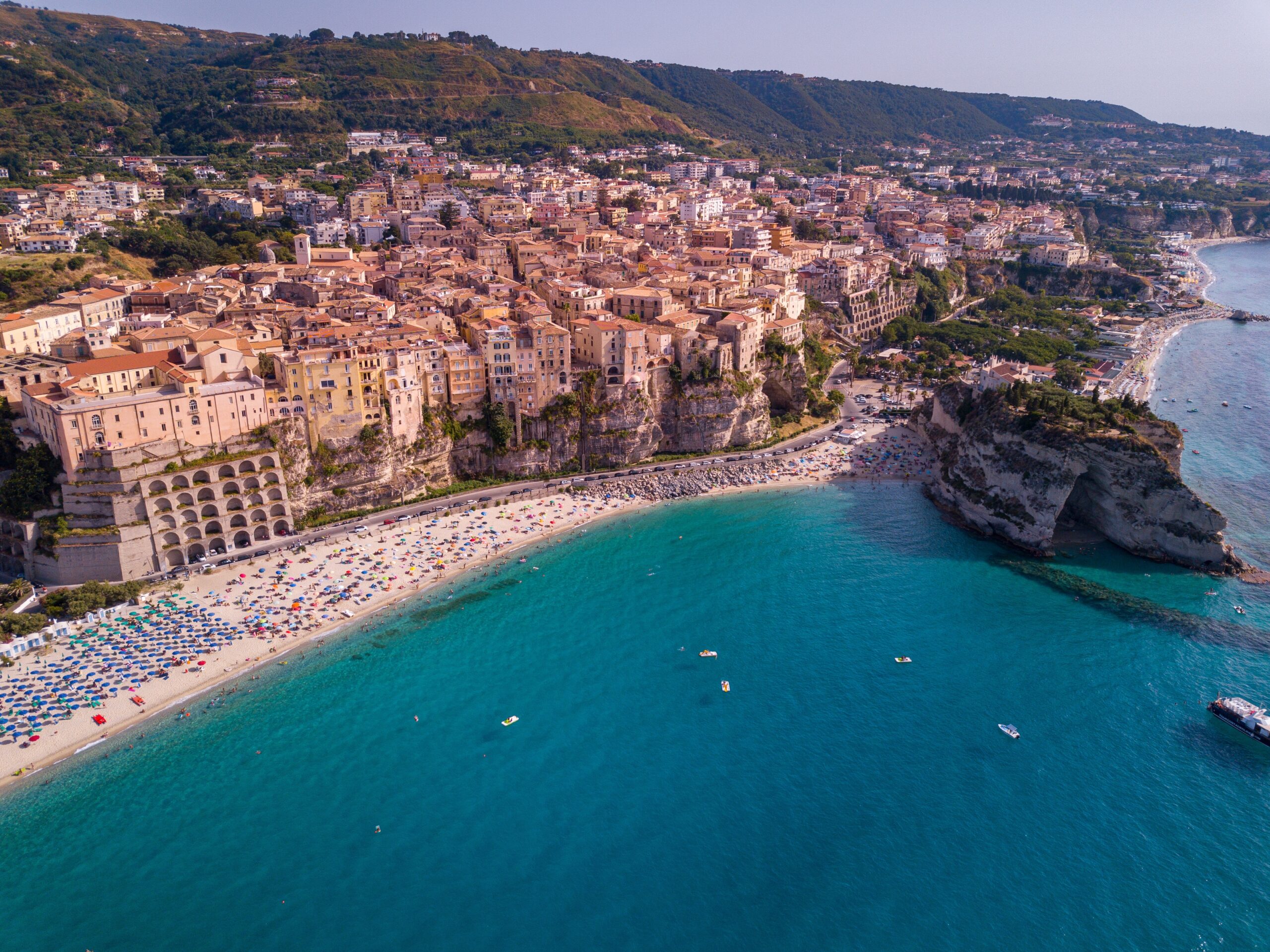 Μακράν ο πιο εντυπωσιακός οπτικά προορισμός της περιοχής, η Τροπέα είναι σκαρφαλωμένη στην κορυφή επιβλητικών πανύψηλων βράχων που κατεβαίνουν απότομα στα αστραφτερά τιρκουάζ νερά της Τυρρηνικής θάλασσας. Με φόντο τους καταπράσινους λόφους της Καλαβρίας, πολυκαιρισμένα και, ταυτόχρονα, απολύτως σικ κτήρια ακροβατούν στους δραματικούς ηφαιστιογενείς βράχους και μετά βίας ξεχωρίζει κανείς σε ποιο ακριβώς σημείο η ανθρώπινη παρέμβαση παίρνει τη σκυτάλη από τη φύση. Λίγα μέρη στον κόσμο ασκούν πάνω σου τέτοια γοητεία. Αν και πολύ δημοφιλής στους Ιταλούς και στους Γερμανούς που αναζητούν τον ήλιο κάθε καλοκαίρι διακαώς, η Τροπέα καταφέρνει να διατηρεί αναλλοίωτη αυτή την υπέροχη διαχρονική, ξεθωριασμένη αίσθηση που χαρακτηρίζει τις νυσταγμένες παραθαλάσσιες πόλεις της νότιας Ιταλίας.