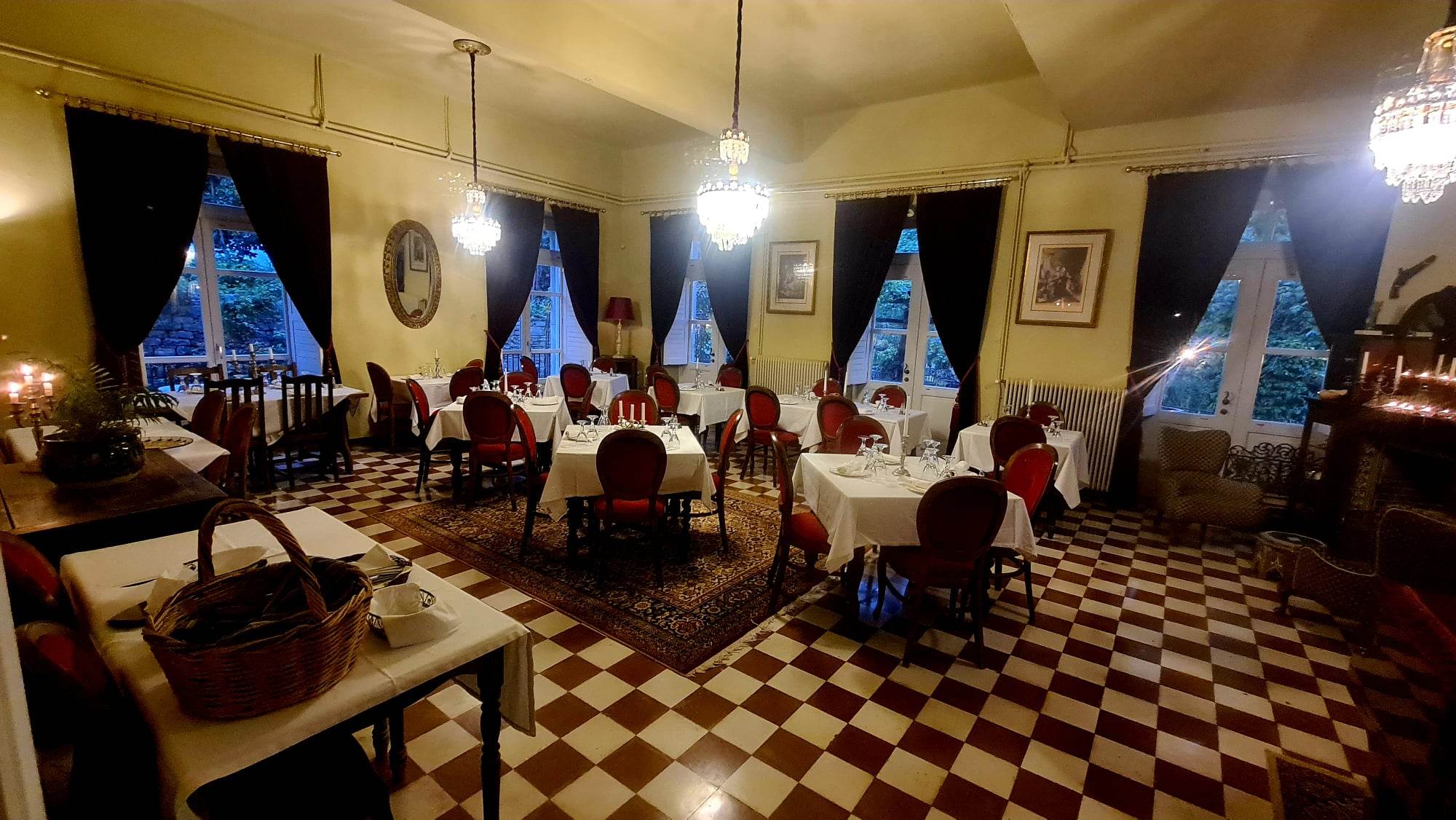Σε αυτή την κομψή σάλα – ή στην κατάφυτη βεράντα το καλοκαίρι – θα δοκιμάσετε νόστιμους συνδυασμούς ευρωπαϊκής κι ελληνικής κουζίνας, όπου συχνά πρωταγωνιστούν οι πηλιορείτικοι καρποί, όπως τα ροδάκινα με ανθότυρο και βασιλικό, το ψαρονέφρι με σύκα, το καραμελωμένο χοιρινό κότσι με πατάτες dauphinoise, το αρνάκι οσομπούκο a la Cipriani, το καταπληκτικό μοσχαρίσιο φιλέτο με σάλτσα άγριων μανιταριών ή γλυκού ροζ πιπερόκοκκου, καθώς και vegan burger, αλλά και μια υπέροχη tart tatin φυσικά με μήλα Ζαγοράς, που θα κλείσει γλυκά μια μοναδική πραγματικά βραδιά. (Λόγω των δύσκολων συνθηκών που προκάλεσε η πρόσφατη θεομηνία, το εστιατόριο όπως και το ξενοδοχείο θα λειτουργήσουν 26-29/10, 22/12 – 7/1 με σετ εορταστικό μενού. Για τη νέα χρονιά, πληροφορίες στο 24260 49930. Το εστιατόριο είναι ανοιχτό μόνο για δείπνο 19:30 – 22:30, ώρα τελευταίας παραγγελίας).