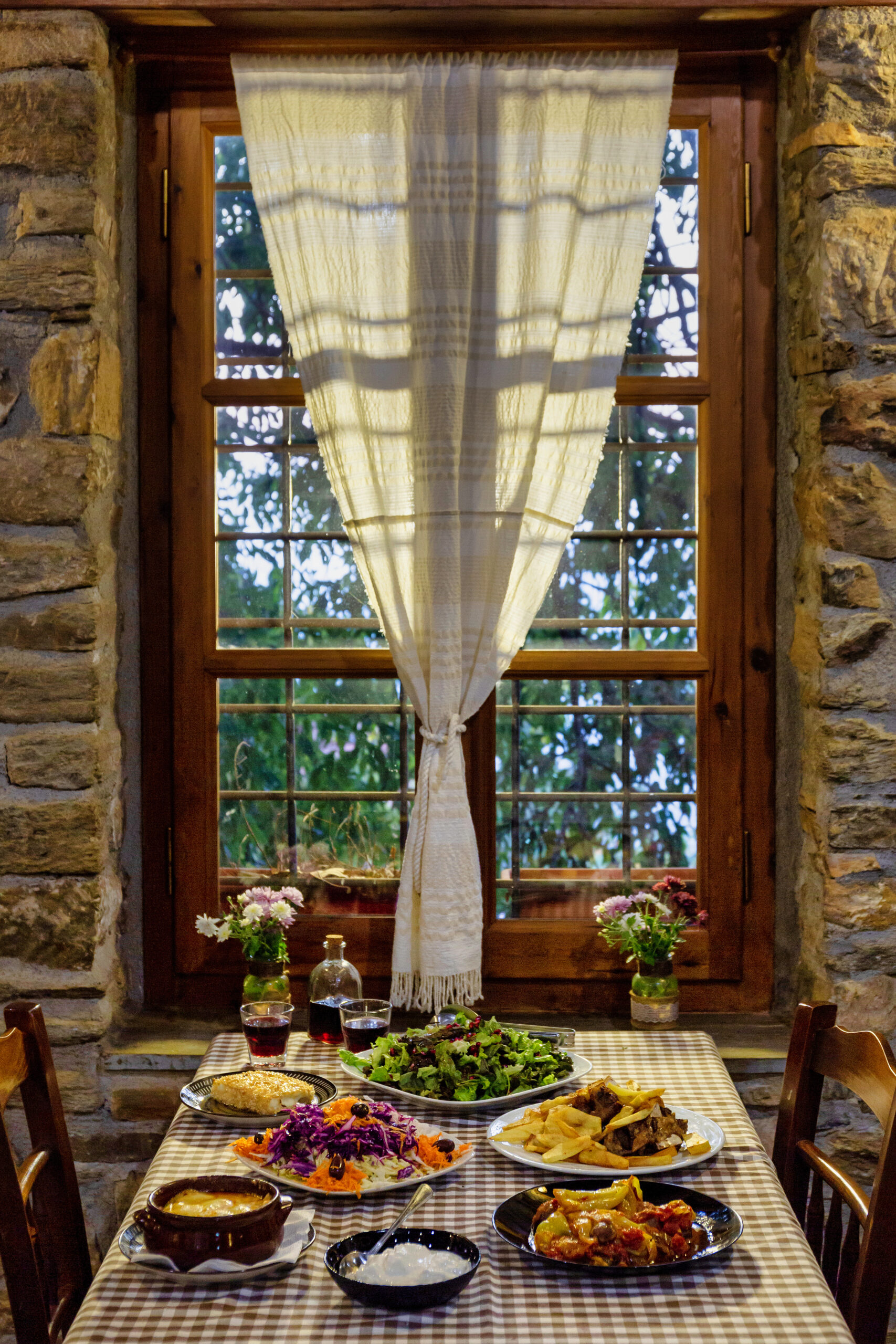 Πιο βόρεια, μια ακόμη δεινή μαγείρισσα, η κυρία Νίκη, θα σας καλωσορίσει εγκάρδια στο καλοφροντισμένο ταβερνάκι της, θα μαγειρέψει και θα σας σερβίρει σαν να ήσασταν καλεσμένοι στο σπίτι της. Στο λουλουδιασμένο μπαλκονάκι «της Νίκης» όπως αποκαλούν οι ντόπιοι το αγαπημένο στέκι τους, η θέα πέρα από την καταπράσινη πλαγιά αγγίζει το Αιγαίο, ενώ στο εσωτερικό η γωνιακή ξυλόσομπα δίνει μια αίσθηση θαλπωρής. Πολύ πιθανό να δείτε να ψήνεται εκεί το ψωμί που θα έρθει στο τραπέζι μαζί τις άλλες νοστιμιές του μενού.