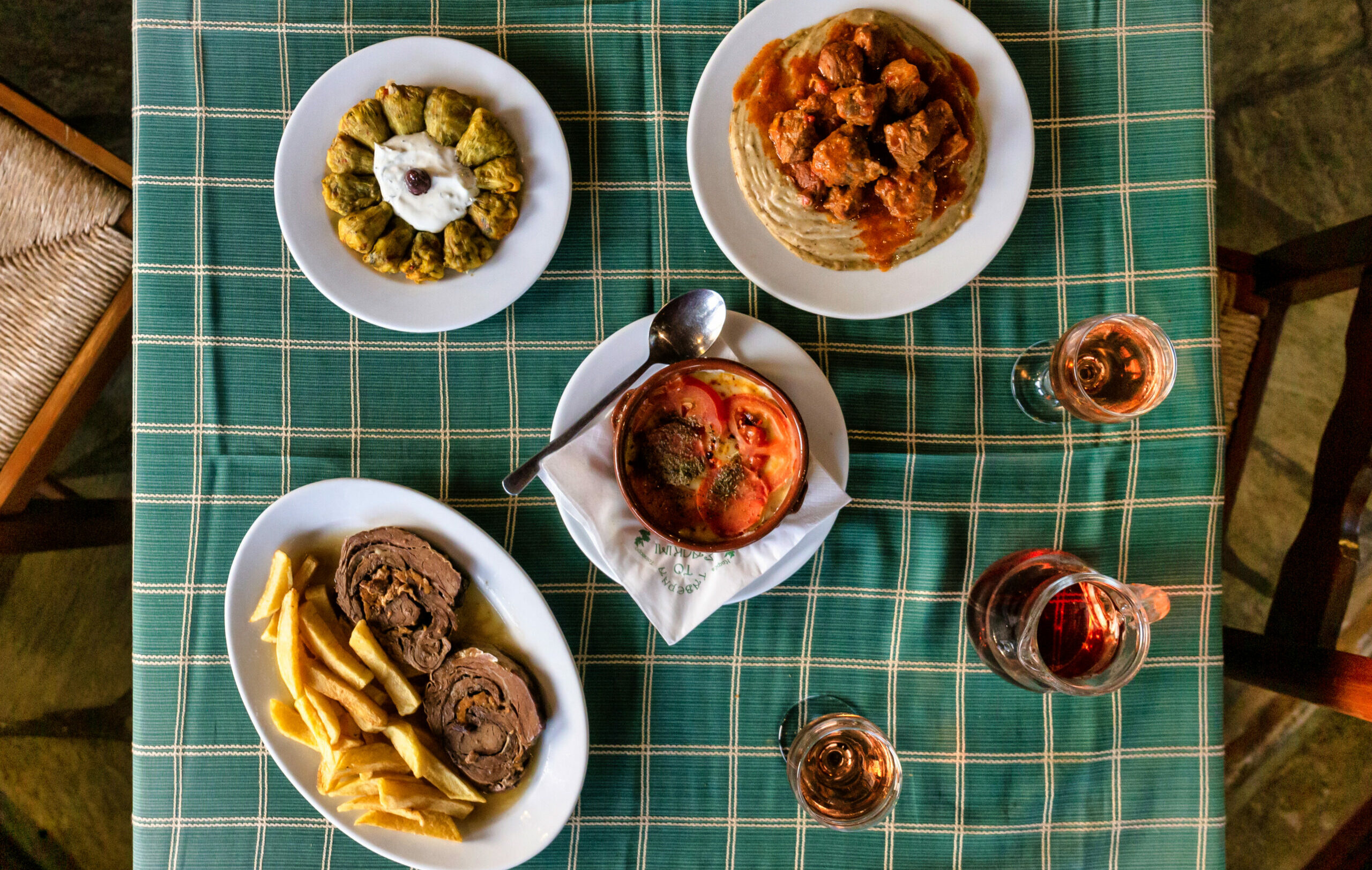 Πρώτη απόδειξη το ζυμωμένο στο χέρι ψωμί που έρχεται ζεστό στο τραπέζι, με δυσκολία θα κρατήσετε λίγο για το φαγητό, ειδικά αν ξεκινήσετε με μια πλούσια σε γαλοτύρι χωριάτικη σαλάτα μέσα σε χειροποίητη φωλιά ζύμης. Από τα ορεκτικά ξεχωρίζουν τα νοστιμότατα ντολμαδάκια, οι γεμιστοί κολοκυθοανθοί και οι εξαιρετικές πίτες με φύλο ανοιγμένο στο χέρι, ανεξαρτήτως ποια θα έχει ετοιμαστεί τη μέρα που θα βρεθείτε στα 5Φ, δοκιμάστε την οπωσδήποτε. Το ίδιο και το καλοψημένο κοκορέτσι και κυρίως τα μαγειρευτά της γάστρας που βρίσκεται μόνιμα στον ξυλόφουρνο, άλλοτε με προβατίνα και πατάτες, άλλοτε με μοσχαράκι με κάστανα ή με κρασάτο κόκορα και γιουβέτσι. Όλα δικαιώνουν την εξαιρετική φήμη ενός μαγαζιού 64 ετών. (Ανοιχτά όλο το χρόνο – Τηλ. 24260 31266).