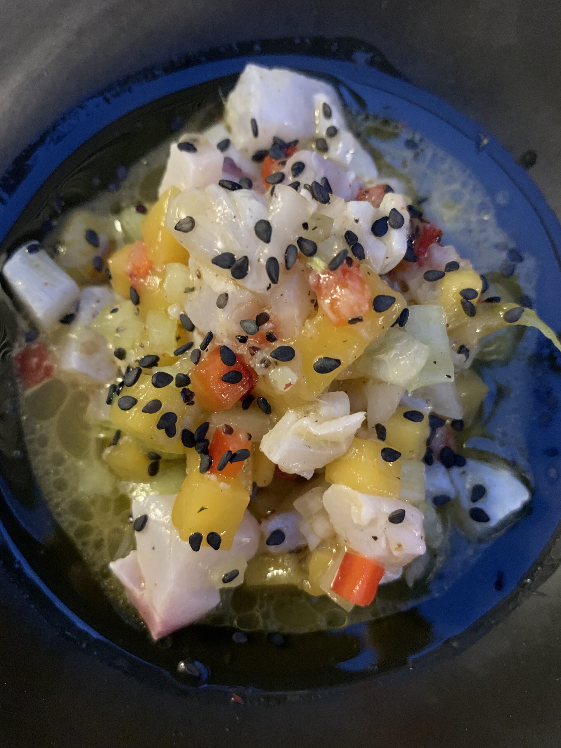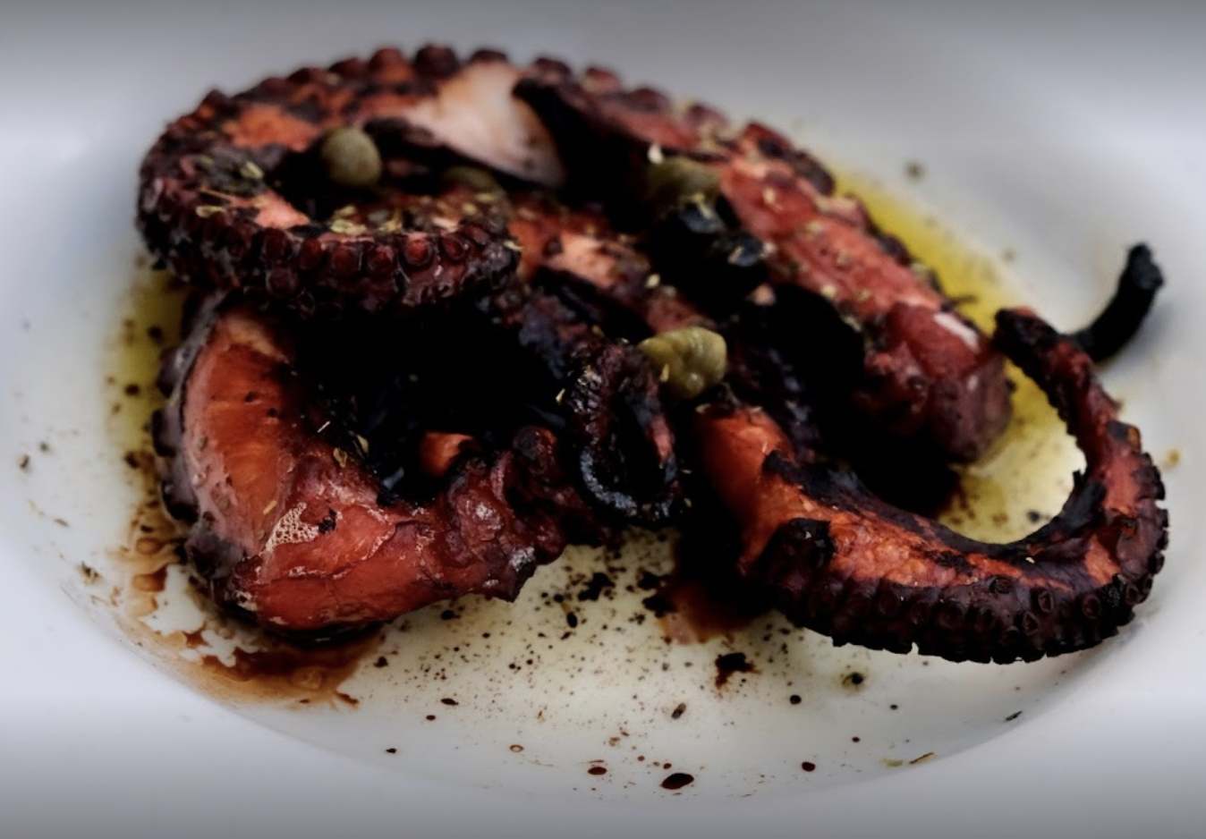 Ιδιαίτερα cool το ανοιχτό μπαρ του μαγαζιού που μπροστά του φιγουράρει ένα καλλίγραμμο ξύλινο ψάρι καθώς και η εξωτερική αυλή που με τα λευκά της τραπέζια κάτω από τις συκιές μας ταξιδεύει σε κάποιο στενάκι σε Κυκλαδίτικο νησί. Στο μενού κυριαρχούν παραδοσιακές συνταγές από την ελληνική και διεθνή κουζίνα αλλά και πιάτα που περιλαμβάνουν κάποια πιο ιδιαίτερα υλικά. Έτσι λοιπόν στα ορεκτικά συναντάμε αέρινη φάβα, αρωματική καβουροσαλάτα, τραγανό συμιακό γαριδάκι, φρέσκα κυδώνια και γυαλιστερές που μυρίζουν θάλασσα αλλά και λεπτοκομμένο sashimi ή ceviche από τόνο και σολομό. Ιδιαίτερο ενδιαφέρον έχουν οι χειροποίητες φαρφαλίνες με πικάντικο λουκάνικο σαλσίτσια και μύδια, ένα πολύ έντονο και comfort πιάτο, καθώς επίσης και οι ψητές γαρίδες με τρούφα που είναι άκρως φινετσάτες και αρωματικές με τέλεια ισορροπία γεύσεων.
