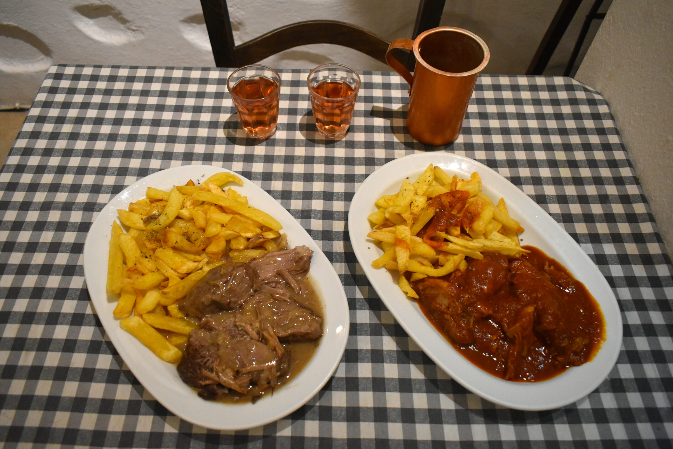Το τελευταίο πιάτο που τρώγεται συνήθως την Τυρινή Κυριακή, θα το βρείτε είτε με μοσχάρι που τσιγαρίζεται με σκόρδο, ελαιόλαδο και κρασί και σιγομαγειρεύεται στην κατσαρόλα για ώρες στην υπέροχη λευκή του σάλτσα, είτε με χοιρινό και προσθήκη ντομάτας στη δική του πληθωρική κοκκινιστή εκδοχή. Ζητήστε το εγκαίρως γιατί γίνεται ανάρπαστο, επιλέξτε αν θα συνοδεύσετε με μακαρόνια ή τηγανητές πατάτες και μην εκπλαγείτε όταν το πρόσχαρο προσωπικό σας σερβίρει τη γιγάντια μερίδα σας.