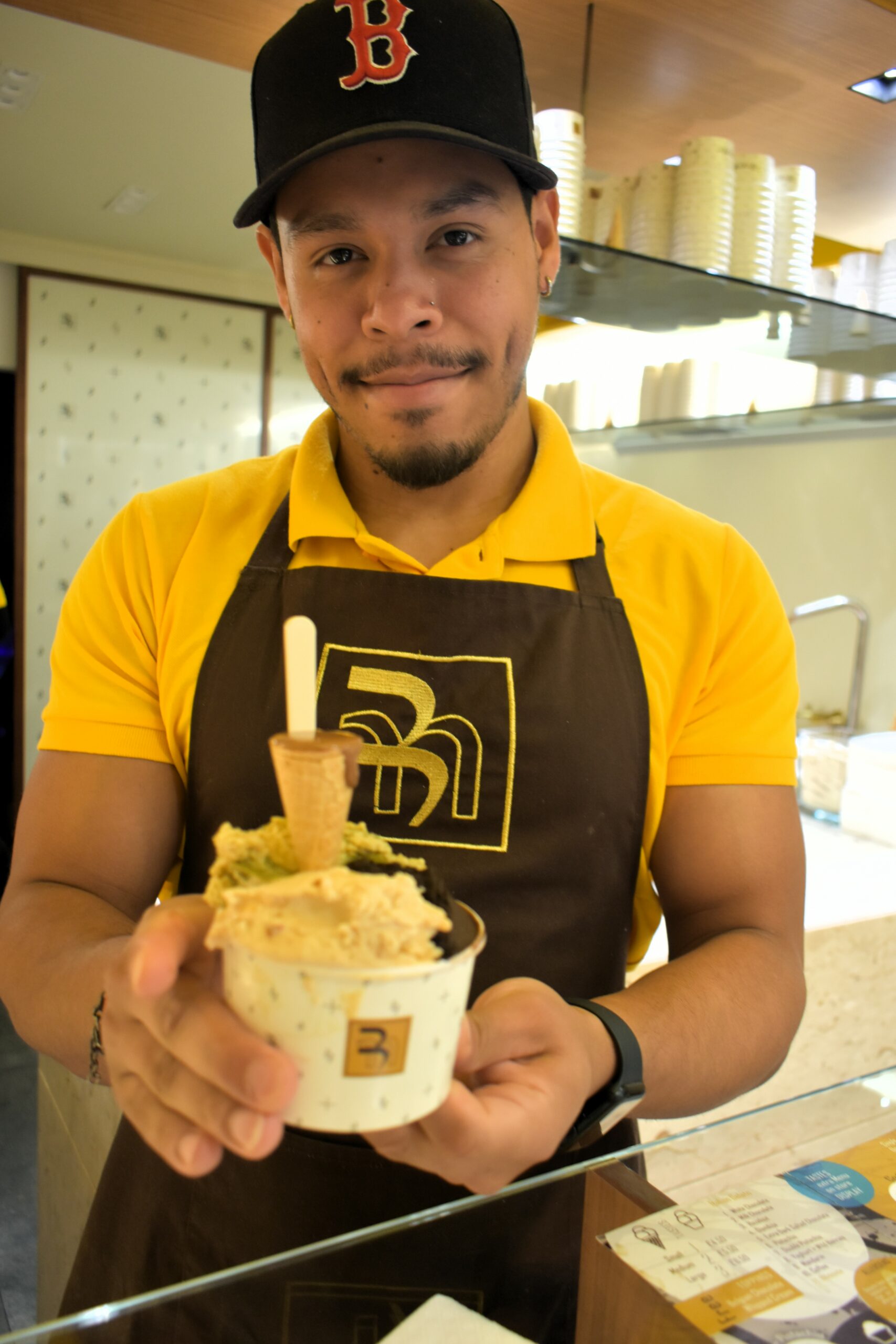 Θα το δοκιμάσετε σκέτο ή ακόμη καλύτερα πάνω σε ένα κομμάτι brownie με κομμάτια λευκής σοκολάτας -επίσης από ube και σε μωβ απόχρωση-, ή κατά την απάντηση των Φιλιππίνων στο παγωτό σάντουιτς, σε ένα «bilog», αφράτο παραδοσιακό λουκουμά που γεμίζεται με παγωτό, ψήνεται ελαφρώς και γαρνίρεται πλουσιοπάροχα με άχνη ζάχαρη. Πιο δροσιστικό το σορμπέ από εξωτικό καλαμάνσι ή λίτσι, ενώ για τους τολμηρούς υπάρχει το Black Buko με καρύδα κι ενεργό άνθρακα, και το αλμυρό Queso με βάση από τυρί. Ο τολμών νικά δεν λένε;