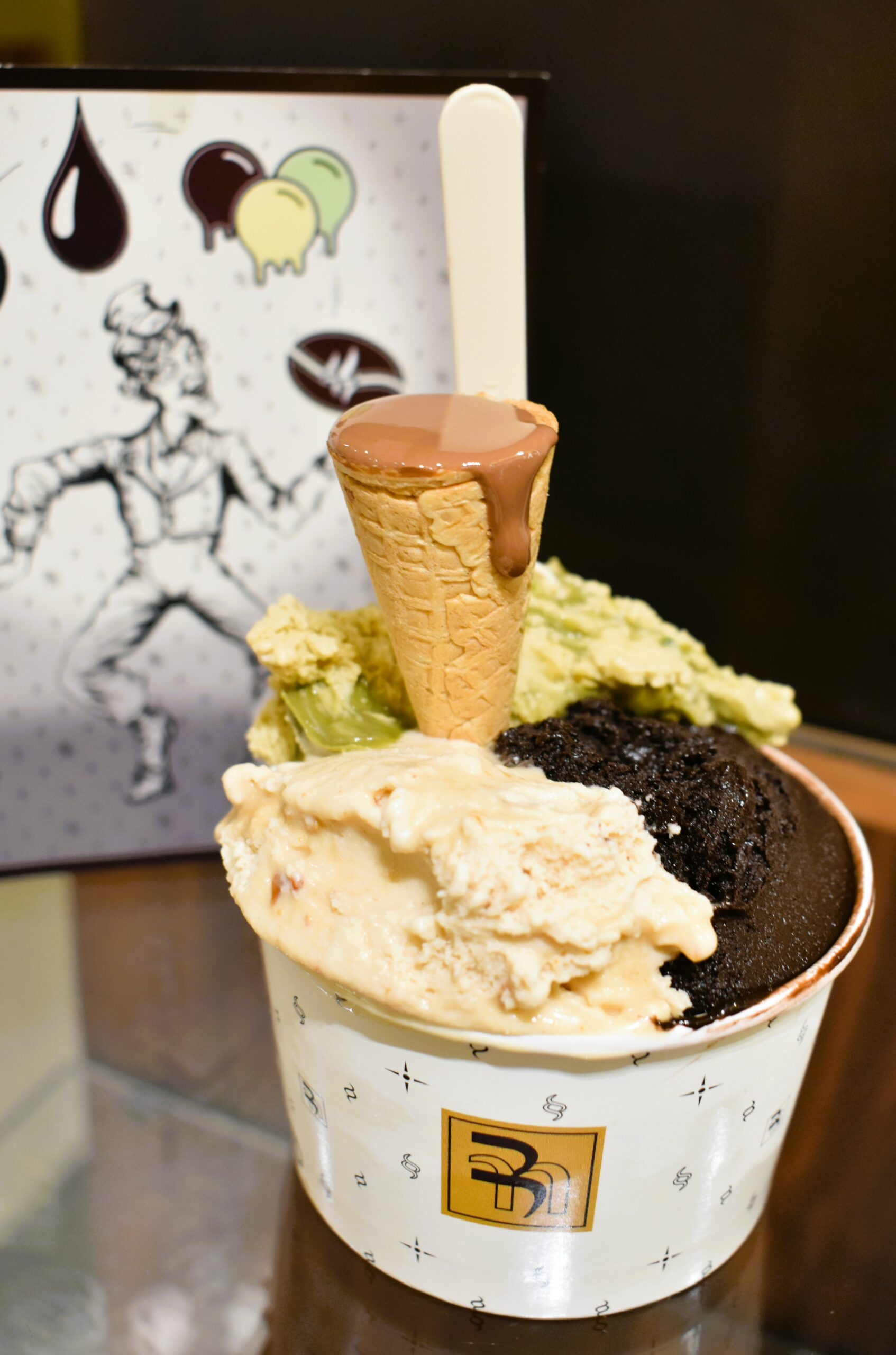 Για να καταλάβει κάποιος ότι εδώ το παγωτό είναι πολύ σοβαρή υπόθεση, αρκεί να δοκιμάσει την κα-τα-πλη-κτι-κή γεύση -σταρ Καμένη καραμέλα βουτύρου, τη Σοκολάτα Valrhona, την Tonka Bean που θυμίζει βανίλια αλλά περιέχει σπόρους τόνκα, την Καφές-Ελαιόλαδο, την Ντόνατ με κανέλλα ή το σορμπέ σμέουρο με υφή τόσο βελούδινη που δεν πιστεύεις ότι είναι vegan. Το ίδιο διαλεχτά και τα toppings με τα οποία θα γαρνίρετε: κηρήθρα, σως καραμέλας με ανθό αλατιού, γλασαρισμένα κεράσια, fudge, θρυμματισμένο φιστίκι με κάρδαμο, ψημένη λευκή σοκολάτα, οι ιδέες είναι ατελείωτες. Κι αν αναρωτιέστε τί καλύτερο από όλα αυτά, η απάντηση ονομάζεται «Brownie Cookie Sandwich» κι αποτελείται από δύο στρογγυλά κομμάτια brownie με μια μεγάλη μπάλα παγωτό καμένης καραμέλας ανάμεσά τους. Η υπογράφουσα οφείλει να προειδοποιήσει ότι είναι απολύτως εθιστικό.