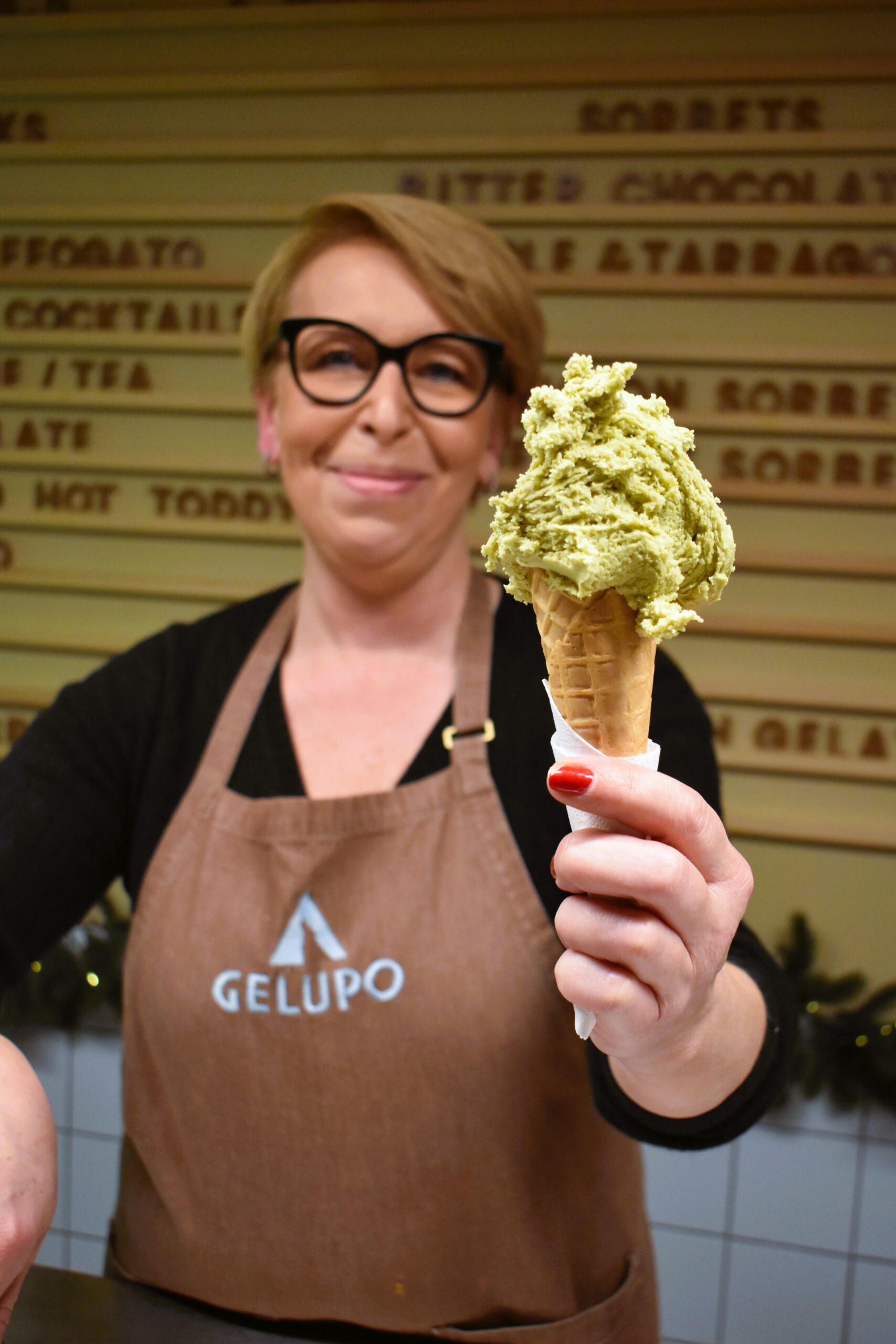 Ιταλική, και μάλιστα σικελιάνικη καρδιά, για το Gelupo, την πιο γλυκιά, δροσερή γωνιά του Soho, που κλείνοντας αργά όπως επιτάσσει η περιοχή, έχει γίνει το εναλλακτικό των pub στέκι μετά τις παραστάσεις των γύρω θεάτρων. Όντως το Gelupo, αδερφάκι του πολύ καλού ιταλικού εστιατορίου Bocca di Lupo που βρίσκεται ακριβώς απέναντι, εξυπηρετεί ουρές πελατών ακόμη και τις καθημερινές του χειμώνα που η θερμοκρασία είναι μονοψήφιος αριθμός. Ένα μέρος των γεύσεων αλλάζει ανάλογα με τα υλικά της εποχής, ο Ιούνιος είναι αφιερωμένος στα σορμπέ μάνγκο, φράουλας και ακτινίδιου που περιέχει και gin αλλά και σε πρωτότυπους συνδυασμούς με τσάι, όπως η πλούσια αλλά με ελαφρώς πικρή επίγευση Λευκή σοκολάτα με matcha και το γλυκό αλλά ελαφρύ Hong Kong Milk Tea.