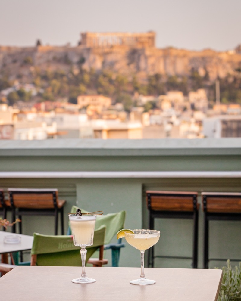 Ο κατάλογος στην εντυπωσιακή ταράτσα με θέα Ακρόπολη που κόβει την ανάσα περιλαμβάνει καφέ, αλλά και γευστικές προτάσεις με πιάτα ελληνικά και μεσογειακά. Παράλληλα, πίσω από την άνετη, πολυτελή μπάρα ετοιμάζονται εξαιρετικά κοκτέιλ. Κάθε εβδομάδα φιλοξενούνται DJs για απογευματινά και βραδινά σετ. Απολαύστε το ποτό σας στην μπάρα με την τέλεια θέα, στην καρδιά της Αθήνας, σε μια ταράτσα που ακόμα δεν έχουν ανακαλύψει πάρα πολλοί και μπορεί να σας χαρίσει μερικές πραγματικά γαλήνιες στιγμές.