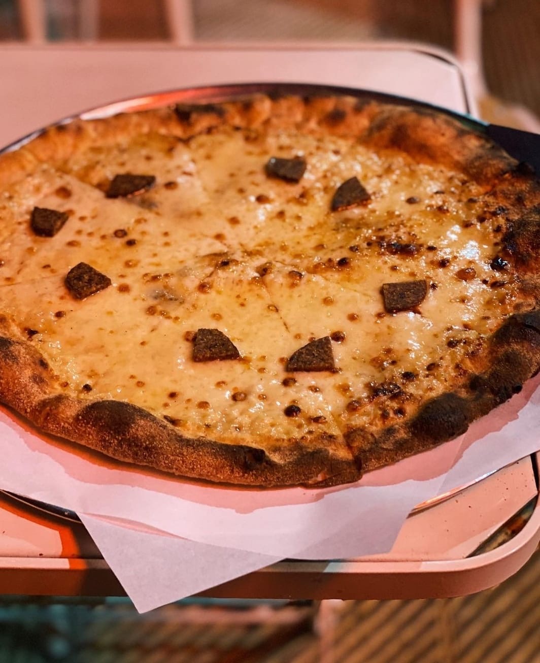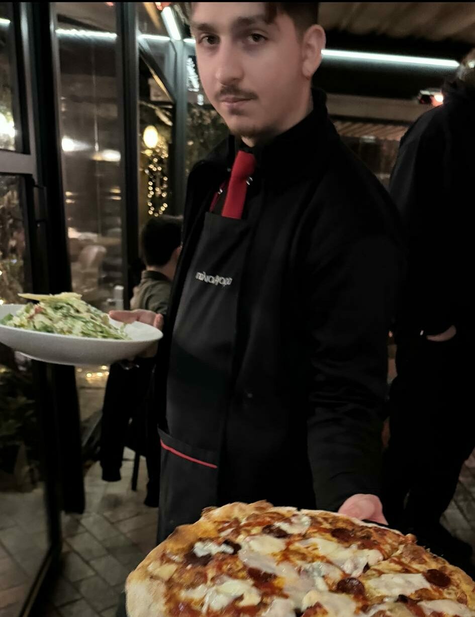 Το μυστικό σε αυτή την πίτσα είναι τι άλλο θα μπορούσε να είναι από το ζυμάρι που είναι από προζύμι και έχει την τέχνη του. Φυσικά ψημένη σε ξυλόφουρνο. Συνήθως, τις άκρες από την πίτσα δεν τις τρώω, αλλά στην εν λόγω πίτσα, το τόσο σωστό ψήσιμο δημιουργεί ένα κριτσανιστό αποτέλεσμα γευστικής τελειότητας. Έτσι, δεν μένει ψίχουλο. Τρεις πίτσες, όλες και όλες, στον κατάλογο, αλλά τρεις πίτσες που έχουν χρειαστεί πολλές ώρες απαιτητικής δουλειάς και πειραματισμού για να επέλθει αυτή η γευστική τελειότητα. Υλικά καλά παντρεμένα μεταξύ τους που με την πρώτη μπουκιά αποκαλύπτονται όλες οι γεύσεις. Αγαπημένη είναι η Φούνγκι με κρέμα παρμεζάνας, προσούτο και ρόκα. Η Τσορίθο είναι πιο πικάντικη και το πιο σημαντικό είναι το προζυμένιο ζυμάρι. Το προζύμι είναι ευκολοχώνευτο και το πολύ θετικό της πίτσας που τρως στην Παλιά Αγορά είναι ότι δεν σε βαραίνει, εννοώντας ότι μπορείς να φας μια πίτσα ολόκληρη και να μην νιώθεις μετά ότι έχεις σκάσει.