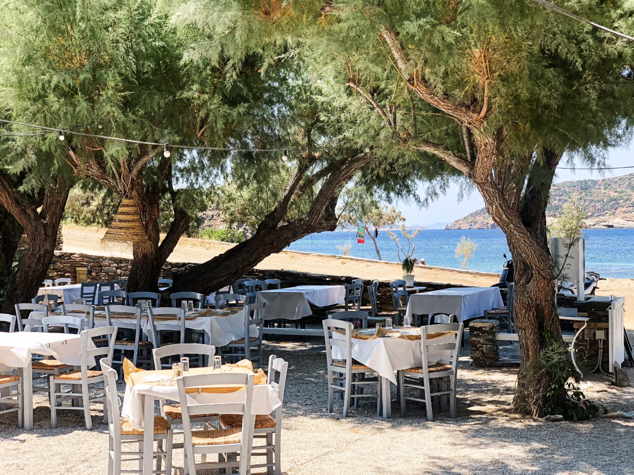 Μια ανάσα από τον Φάρο, στο νότιο άκρο του νησιού, βρίσκεται η γραφική παραλία της Φασολού. Δίπλα της στέκεται η ομώνυμη ταβέρνα του Μιχάλη Χαϊτίδη. Ο Δημήτρης Ζαμπέλης ήταν αυτός που την πρωτάνοιξε, στις αρχές της δεκαετίας του 1990, αλλά και ο άνθρωπος που έδωσε στην παραλία τη σημερινή της μορφή. «Εδώ παλιά ήταν χωράφι. Ο κύριος Δημήτρης, ένας πολύ αξιόλογος και δημιουργικός άνθρωπος, φρόντισε να γίνει ο δρόμος που τώρα φτάνει μέχρι την παραλία, έχτισε τη μάντρα του μαγαζιού και όλα τα πέτρινα και φύτεψε τα περισσότερα δέντρα που βρίσκονται αυτή τη στιγμή εδώ» λέει ο Μιχάλης. Σήμερα συνεχίζεται η αναβάθμιση της περιοχής από τον καινούργιο ιδιοκτήτη και η ταβέρνα παρουσιάζεται πλήρως ανακαινισμένη, με φιλικό service, άκρως προσεγμένο περιβάλλον και πολλές εστιατορικές νότες. Λευκά ξύλινα τραπέζια απλώνονται στην τεράστια, στρωμένη με χαλίκι, αυλή. Στα άσπρα ντυμένο και το εστιατόριο ενώ μπροστά του έχουν στηθεί καλόγουστοι, αναπαυτικοί καναπέδες. Τα δέντρα, που χαρίζουν δροσιά με την πυκνή σκιά τους και ανεπανάληπτες μελωδίες με το θρόισμα των φύλλων τους, και η πανοραμική θέα στα κρυστάλλινα νερά και τον κόλπο δημιουργούν ένα χαλαρό και ευχάριστο σκηνικό και προσφέρουν απόλυτη ηρεμία.