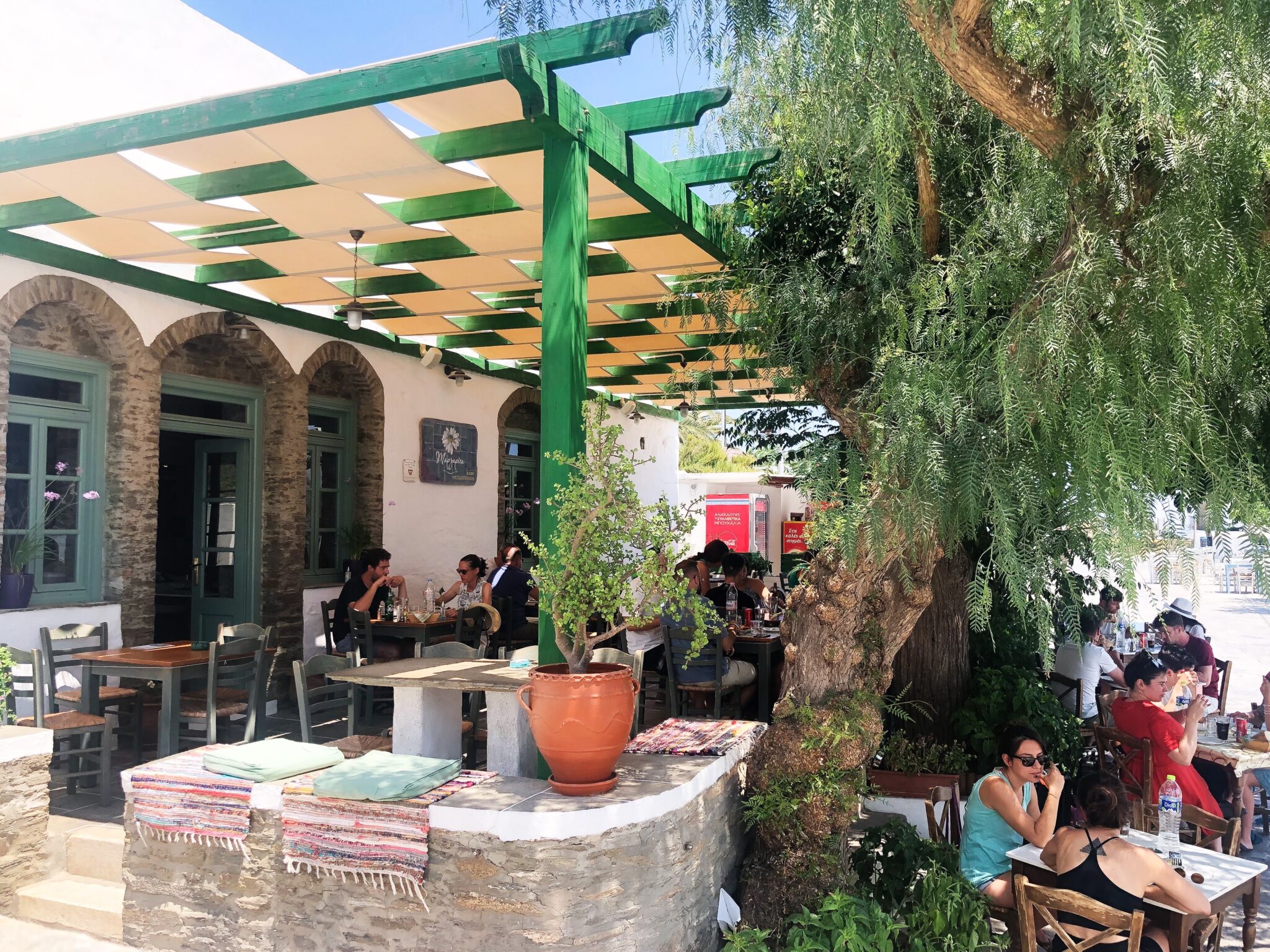 Στην πλατεία του γραφικού Αρτεμώνα, στην καρδιά της Σίφνου, συναντάμε το ουζερί και μεζεδοπωλείο Μαργαρίτα του Κώστα Χρύσου, το οποίο πρωτάνοιξαν το 1990 οι γονείς του. Με λευκό χρώμα, πέτρα γύρω από τα γραφικά παράθυρα και τις πόρτες, παραδοσιακά τραπέζια, που απλώνονται στην αυλή, και μαξιλάρια πάνω στους χτιστούς πέτρινους καναπέδες, το μαγαζί ενσωματώνεται με το περιβάλλον. Το καλαίσθητο σκιάστρο και τα ψηλά δέντρα χαρίζουν δροσιά ενώ η θέα στα γραφικά σοκάκια του Αρτεμώνα, τα παραδοσιακά σπίτια και τα μαγαζάκια που στολίζουν την πλατεία είναι ιδιαίτερα γοητευτική. Την απόλυτη ευχαρίστηση που δημιουργεί το χαλαρό και ήρεμο σκηνικό αυξάνει κατακόρυφα η καταπληκτική κουζίνα με τις νοστιμιές της. «Το μαγαζί έχει πάρει το όνομα της μητέρας μου. Ήταν εκείνη που μαγείρευε όταν πρωτάνοιξε. Το διευθύνω εγώ εδώ και πολύ καιρό αλλά τα τελευταία δέκα χρόνια έχω αναλάβει και τη μαγειρική», λέει ο Κώστας, ενώ προσθέτει «έχω κρατήσει το όνομα αλλά έχω αλλάξει λίγο το ύφος. Το έχω κάνει λίγο πιο εστιατορικό με μεζέδες και ποικιλία επιλογών σε ψητά και μαγειρευτά, διατηρώντας όμως τα παραδοσιακά πιάτα».