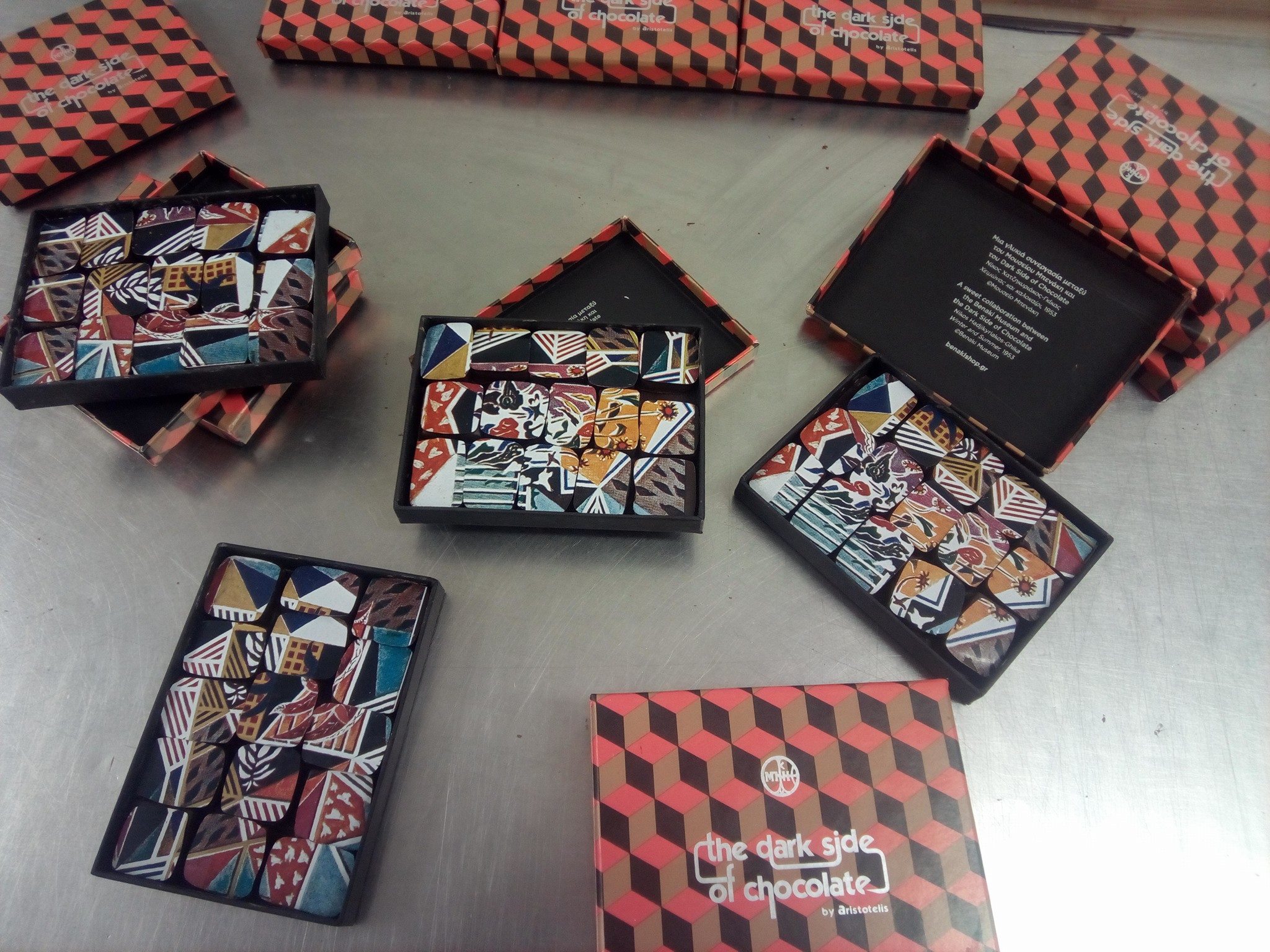 ξύσμα πορτοκάλι ή απλά με σοκολάτα γάλακτος. Τέλειο δώρο για τους σοκολατοφάγους της καρδιάς σας, αλλά και για όσους δεν μπορούν παρά να μείνουν άφωνοι με το καταπληκτικό design και τα πολύχρωμα σχέδια ζωγραφισμένα πάνω στα μικρά κομματάκια σοκολάτα.