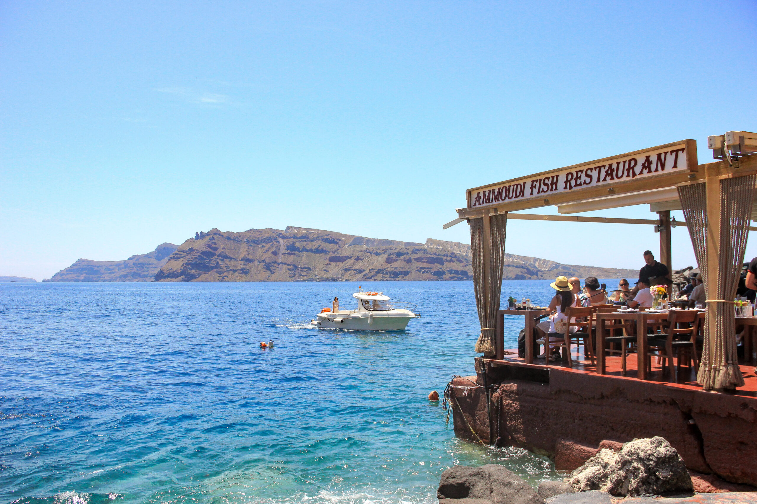 Στην εμβληματική Σαντορίνη, δίπλα στα εντυπωσιακά εστιατόρια με fine αλλά και “fun” dining, σύγχρονη ελληνική, ethnic fusion καθώς και comfort κουζίνα, στέκονται ταβέρνες που συναρπάζουν με το νόστιμο φαγητό τους, την πανέμορφη θέα τους και την μοναδική τους ατμόσφαιρα. Χτισμένες πάνω στο κύμα, αποτελούν άξιους πρεσβευτές της ανεμελιάς και της ανεκτίμητης απλότητας των ελληνικών νησιών και χαρίζουν ανεπανάληπτες στιγμές χαλάρωσης.