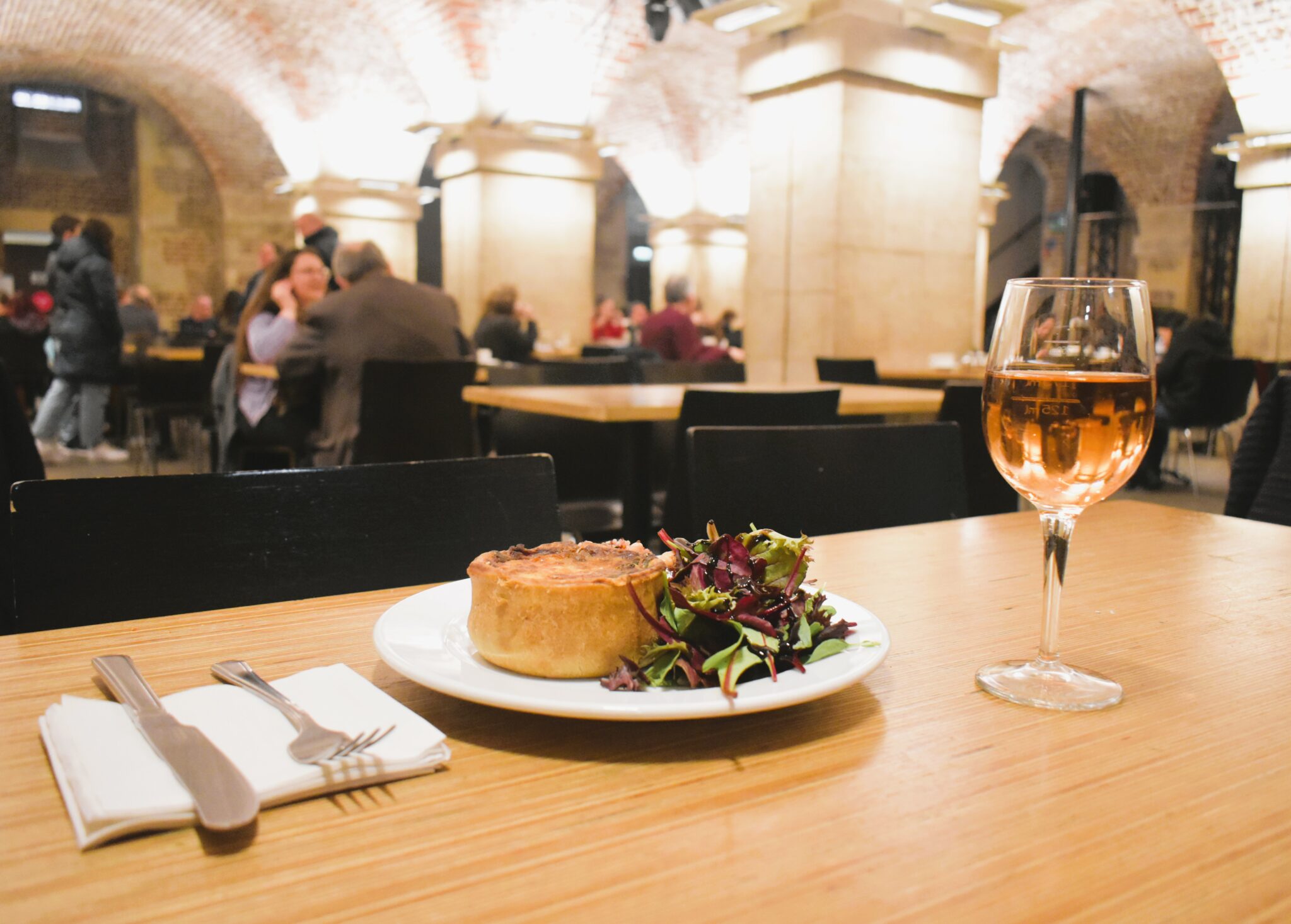 Το σημείο είναι ό,τι πιο ιδανικό για μια στάση ανάπαυλας από τα άφθονα γύρω αξιοθέατα και για τους ντόπιους ένα στέκι τόσο αγαπητό, που οι ζεστοί και ατμοσφαιρικοί χώροι του δεν αδειάζουν ποτέ. Τα τελευταία χρόνια το μενού που αλλάζει καθημερινά έχει αναβαθμιστεί κι αν αναζητάτε ένα μέρος για να δοκιμάσετε κλασσικά βρετανικά πιάτα, χορταστικές πίτες και νόστιμες κις λωρέν, να ζεσταθείτε με μια αχνιστή σούπα, ή να πάρετε το απογευματινό σας τσάι με παραδοσιακά scones και ολόφρεσκα γλυκά σε value for money κόστος, δεν έχετε παρά να πάρετε το κυλινδρικό ασανσέρ ή τη σπειροειδή σκάλα δίπλα στην εκκλησία και να κατεβείτε στο πιο καλά φυλαγμένο μυστικό του κεντρικού Λονδίνου. Για μια αυθεντική εμπειρία ελάτε την Κυριακή, δοκιμάστε το χαρακτηριστικό πιάτο Sunday roast, ενδώστε σε μια πλούσια πουτίγκα apple crumble pudding με μαμαδίστικη custard cream και κλείστε εισιτήριο για μια από τις βραδιές «Crypt Lates», όταν ο χώρος μεταμορφώνεται σε μουσική σκηνή με πλήρως εξοπλισμένο μπαρ, χωρίς να λείπουν φυσικά οι επιλογές νόστιμων πιάτων.