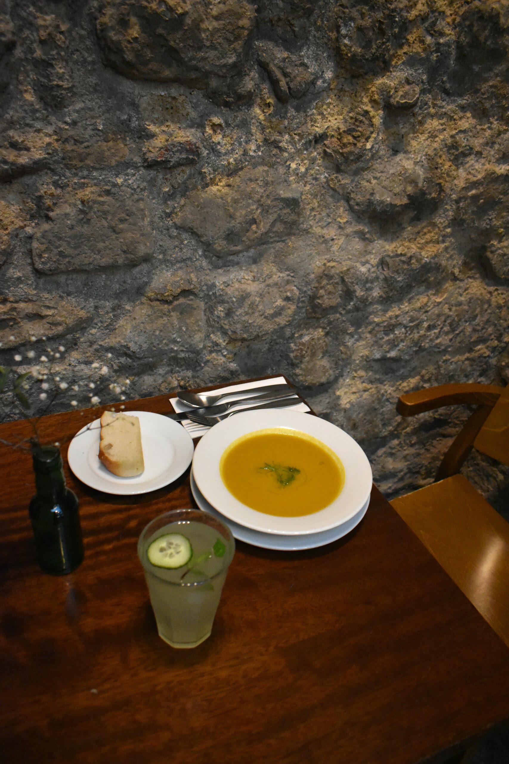Το σημείο είναι ό,τι πιο ιδανικό για μια στάση ανάπαυλας από τα άφθονα γύρω αξιοθέατα και για τους ντόπιους ένα στέκι τόσο αγαπητό, που οι ζεστοί και ατμοσφαιρικοί χώροι του δεν αδειάζουν ποτέ. Τα τελευταία χρόνια το μενού που αλλάζει καθημερινά έχει αναβαθμιστεί κι αν αναζητάτε ένα μέρος για να δοκιμάσετε κλασσικά βρετανικά πιάτα, χορταστικές πίτες και νόστιμες κις λωρέν, να ζεσταθείτε με μια αχνιστή σούπα, ή να πάρετε το απογευματινό σας τσάι με παραδοσιακά scones και ολόφρεσκα γλυκά σε value for money κόστος, δεν έχετε παρά να πάρετε το κυλινδρικό ασανσέρ ή τη σπειροειδή σκάλα δίπλα στην εκκλησία και να κατεβείτε στο πιο καλά φυλαγμένο μυστικό του κεντρικού Λονδίνου. Για μια αυθεντική εμπειρία ελάτε την Κυριακή, δοκιμάστε το χαρακτηριστικό πιάτο Sunday roast, ενδώστε σε μια πλούσια πουτίγκα apple crumble pudding με μαμαδίστικη custard cream και κλείστε εισιτήριο για μια από τις βραδιές «Crypt Lates», όταν ο χώρος μεταμορφώνεται σε μουσική σκηνή με πλήρως εξοπλισμένο μπαρ, χωρίς να λείπουν φυσικά οι επιλογές νόστιμων πιάτων.